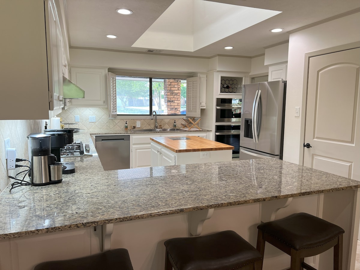 Dobro došli u svoj luksuzni dom daleko od doma u srcu istorijskog Brajana u Teksasu! Ovaj zadivljujući objekat se može pohvaliti sa skoro 4.000 kvadratnih metara elegantnog životnog prostora, zajedno sa grijanim bazenom i hidromasažnom kadom u dvorištu za vrhunsko iskustvo opuštanja. Spavaća soba 1 - bračni krevet i jedan kauč na razvlačenje 2. spavaća soba - bračni krevet (širine 150-179 Spavaća soba 3 - bračni krevet (širine 150-1 Spavaća soba 4 - 3 kreveta na sprat Kancelarija - Marfijev krevet Spavaća soba 5 - 1 bračni krevet