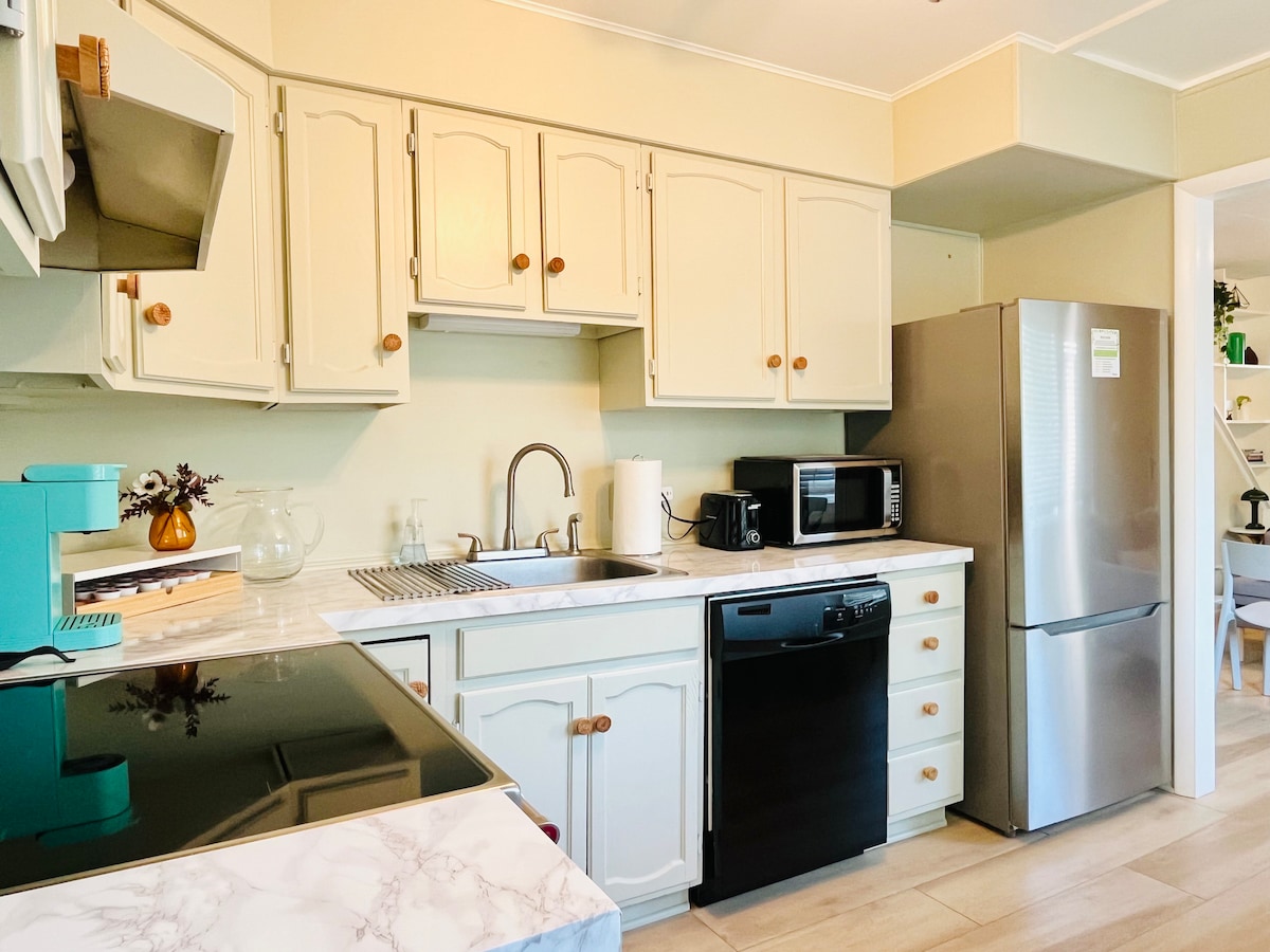 Osećajte se kao kod kuće u našem slatkom podrumskom stanu sa 1 spavaćom sobom. Idealno za odmor kao što su psu sportovi, koncerti, diplomiranje, umetnički festival, poseta porodici, biciklizam/planinarenje ili bilo šta drugo u Hepi Veliju. *Privatan ulaz sa bravom ključa *Parking: 1 automobil (2 na zahtev) * Kuhinja/dnevna soba otvorenog tlocrta * Wi-Fi velike brzine *100% bez dima/kućnih ljubimaca *1 bračni krevet, 1 kauč/kauč na razvlačenje , 1 dušek na naduvavanje *4 gosta maksimalno *unutrašnje dvorište sa kaminom, roštiljem i stolom *Dugoročni boravak na zahtev *Dodirnite ikonu srca da biste nas lako pronašli