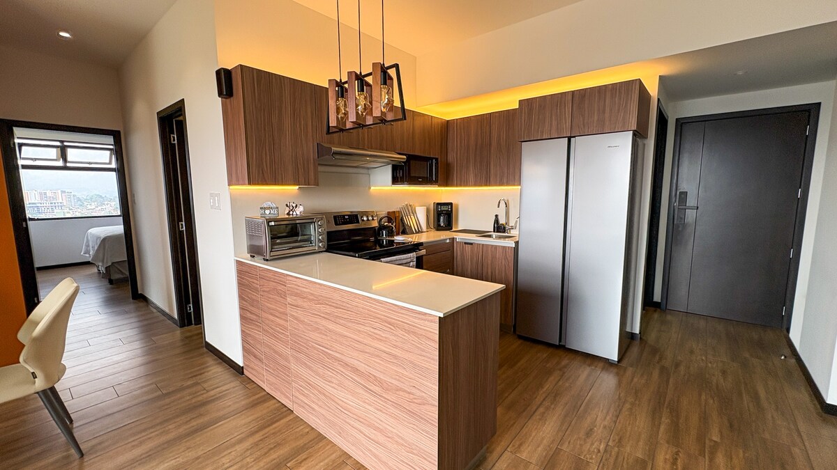 Odsednite na vrhu Gvatemala Sitija u Altaireu, najvišoj zgradi u gradu! Ovaj moderan stan sa dve spavaće sobe nudi zadivljujući pogled, prostor za opuštanje na krovu, bazen i teretanu. Parking je dostupan! Savršen je za parove, porodice ili poslovne putnike, a ima brzi Wi-Fi, potpuno opremljenu kuhinju i bezbedan parking. Doživite jedinstven, luksuzan odmor na vrhunskoj lokaciji.