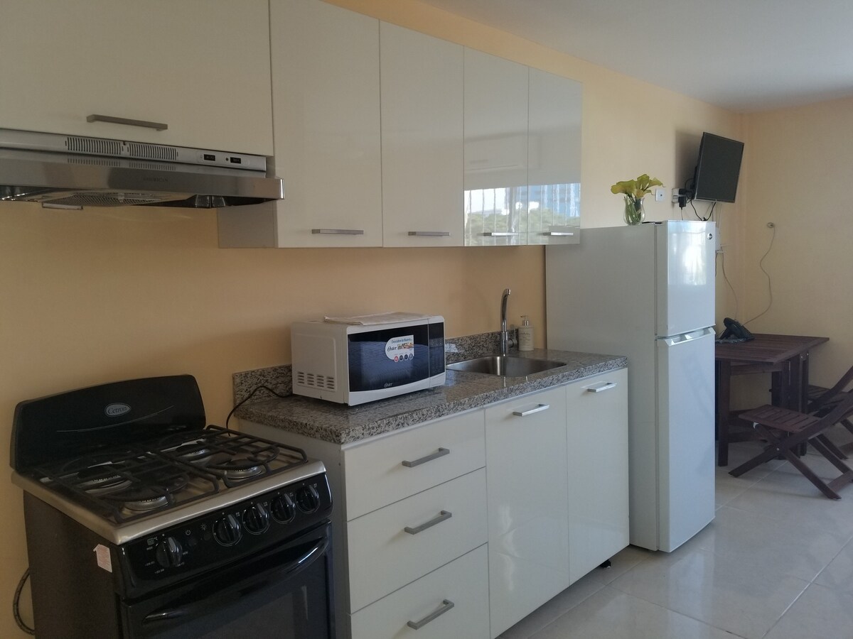 Bonitos y acogedores departamentos estudio completamente equipados con: Aire acondicionado Planta Full Gas por tubería Televisión con 800 canales internacionales Lavandería Microondas Restaurante Bar Terraza Apartamento totalmente independiente, somos un aparta-hotel con 21 apartamentos y queremos que sepan que no es un apartamento compartido.