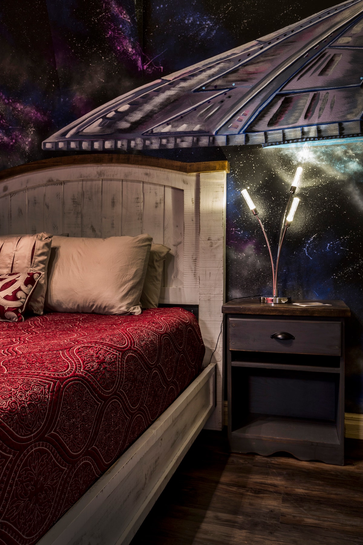 Step into a realm of tranquility where magic awaits at every turn! Our Enchanted Forest cabin invites you to unwind amidst nature's embrace, boasting a natural river rock floor and a whimsical mushroom bed crafted by Denver's own Doug Schenck. Whether you're seeking solace after a Red Rocks show or a serene getaway, let the enchantment of our cabin weave its spell around you. Book now and discover the perfect sanctuary to craft memories and tales that last a lifetime.