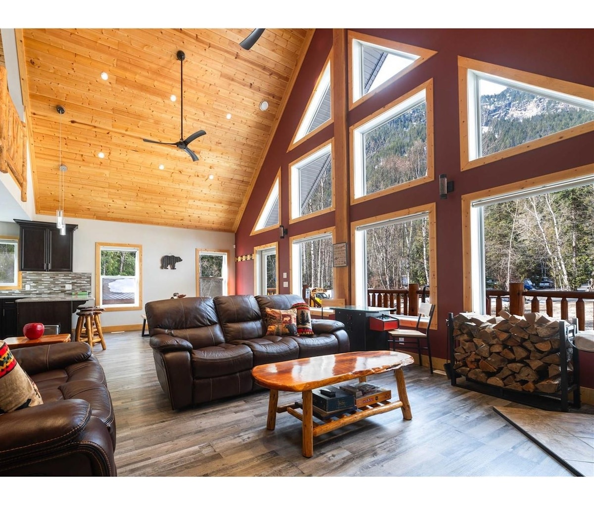 Ova prostrana planinska kuća sa drvenim okvirom je odlična tokom cijele godine! *Potpuno nova hidromasažna kada je instalirana u jesen 2025. Koraci od uređene skijaške staze koja vas vodi do liftova i gondole odmarališta. Nakon skijanja možete da idete drugom uređenom stazom koja se završava direktno preko puta kuće. Pravi smještaj uz skijašku stazu! Staze za brdski biciklizam, planinarenje, jezera, restorani, kafić i grad Golden u blizini. Kuća je prostrana i odlična za okupljanja otvorenog koncepta. Sve što vam je potrebno za uživanje u odmoru