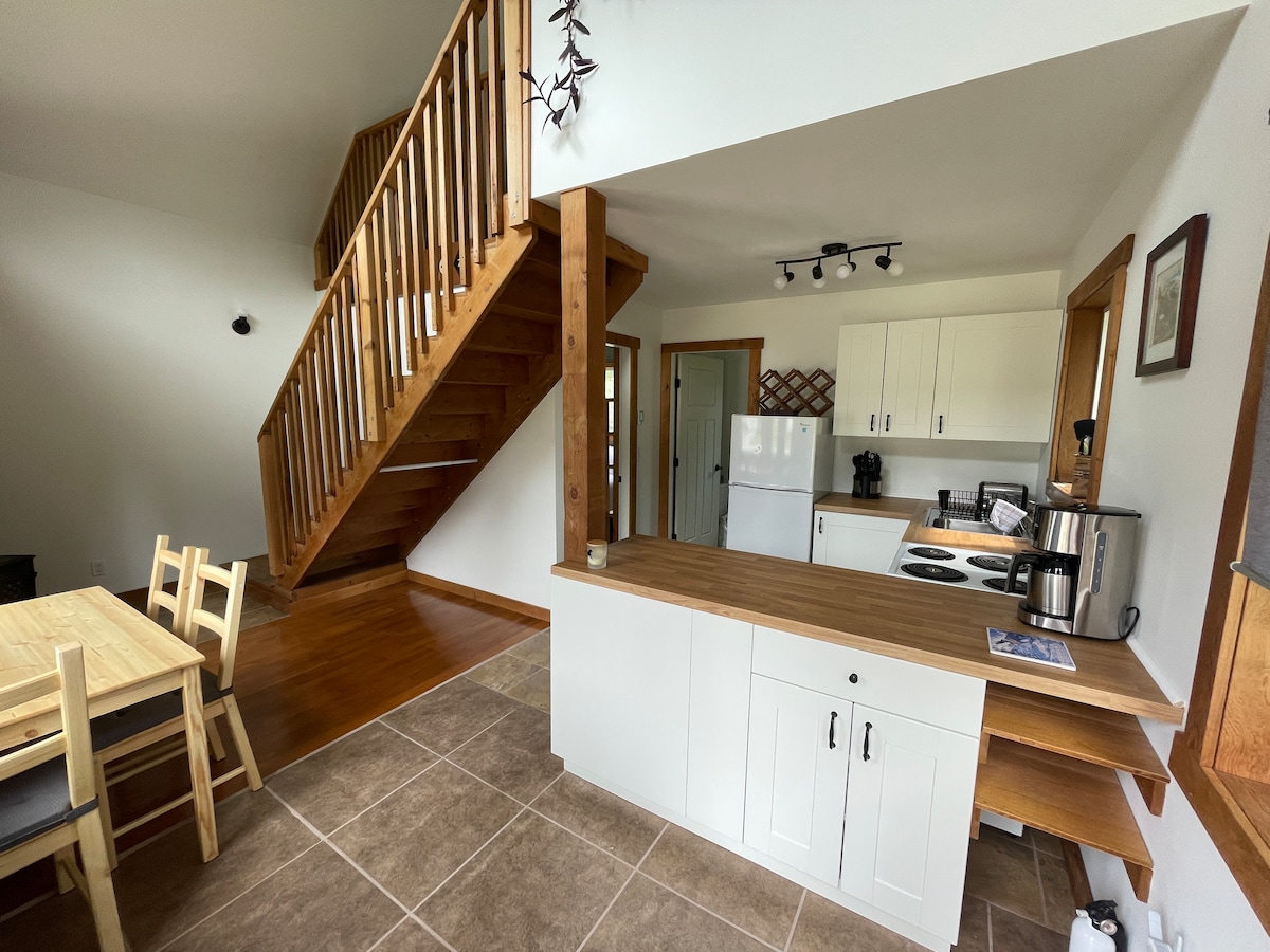 Napravite aneks @ Black Cedar bazni kamp za vašu sledeću avanturu. Samo 10 minuta južno od Golden (Britanska Kolumbija) u srcu parkova. Opustite se u toplini ovog udobnog, romantičnog, luksuznog modernog planinskog apartmana. Osjetite toplinu pločica na nogama dok ulazite u samostojeću kadu, pijte u ruci, nakon velikog dana u Alpama. Uživajte u kofeinu slušajući pjev ptica prije dana provedenog u istraživanju okolnih planina. Pješačite, vozite bicikl, skijajte, popnite se ili se opustite i uživajte u prirodi.
