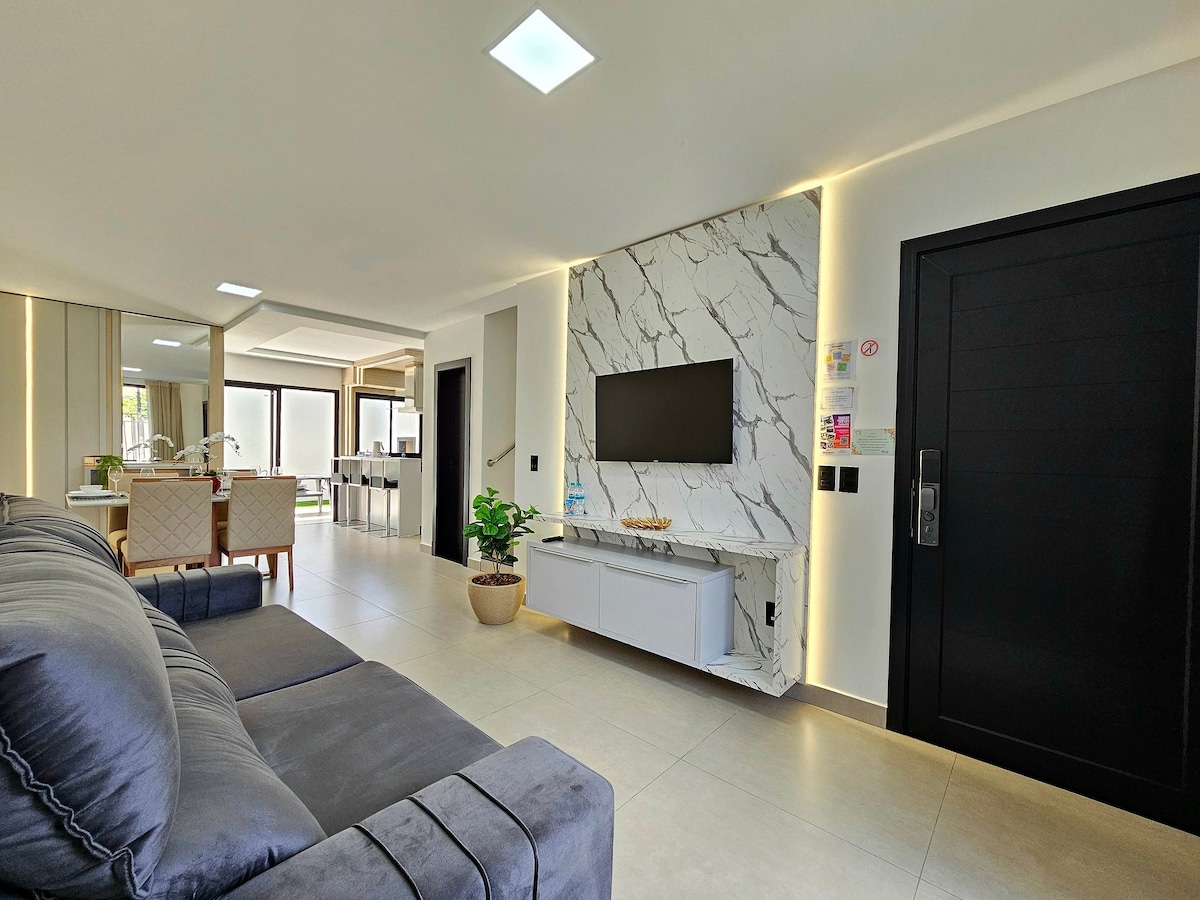 Casa térrea 400m -Piscina com água Salinizador -Privacidade, segurança e silencio. - 4 quartos com camas confortáveis de casal e solteiro. --Ar condicionado em todos os quartos. - Duas cozinhas. -Churrasqueira - Mesa de bilhar oficial - Garagem 4 veículos - Banheiros internos + lavabo -Roupas de Cama e Banho 100% algodão *Contato com a natureza e desconexão há 15 minutos dos principais atrativos turísticos, aeroporto *Fácil acesso por estrada pavimentada .