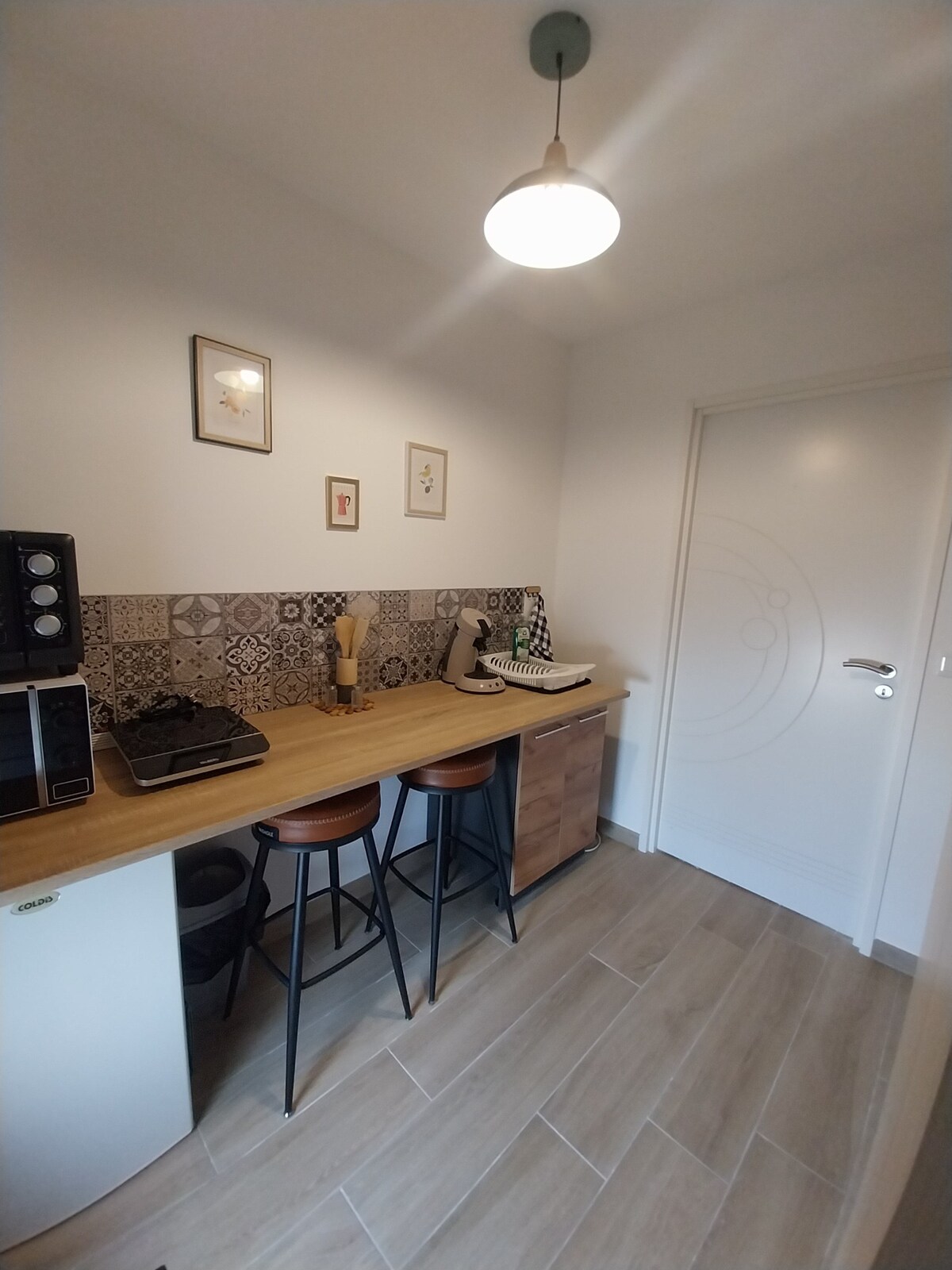 Studio koji je upravo renoviran, nalazi se između glavne osi Laval-Mayenne. Nalazi se u mirnom dijelu grada. Smještaj ima sef za ključeve sa nezavisnim ulazom, privatni prostor za automobil odmah ispred . Ima ulaz, kuhinju: mikrotalasnu rernu, rernu i indukcionu ploču za kuvanje, frižider. Kupatilo sa tuš kabinom. Za kraj u glavnoj spavaćoj sobi/dnevnoj sobi opremljenoj televizorom. Cijenićete kvalitetne materijale i dekoracije.