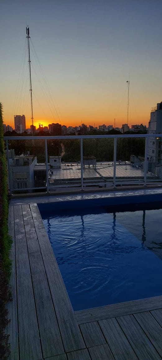 Modern studio with open view in the heart of the Caballito neighborhood. Fully equipped for a perfect stay! (BBQ and Gym included!) Located in one of the most beautiful and exclusive zones of Caballito. 3' to 'Primera Junta' subway station, the quiet and beautiful 'Barrio Ingles' and the renovated Av. Pedro Goyena! Super bright and comfortable for up to 3 people (2 adults and a kid), equipped with ✔ High-speed Wifi ✔ Amazon Fire TV/Netflix ✔ A/C ✔ balcony ✔ terrace ✔ washing/dryer machine!