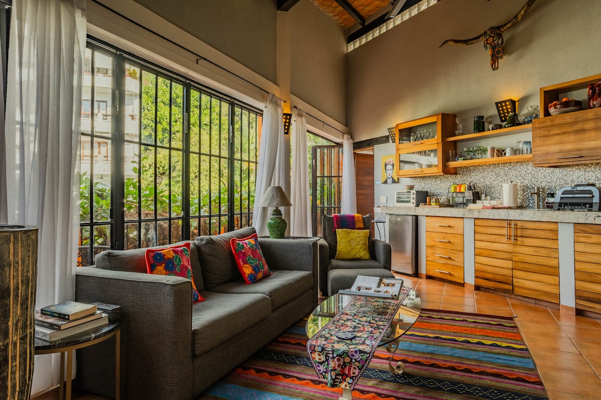 - Enjoy the relaxing on the rooftop terrace with a spa tub, lounge chairs & city views - WiFi, Smart TV, fully-equipped kitchen, indoor & outdoor dining areas, shared BBQ - Just on the edge of the Romantic Zone, just about 6 blocks from the beach - Perfect proximity to the city, close to nightlife, spas, relaxation, fun & amenities - Dive into the Vallarta experience! Book now for a memorable stay with family & pets!