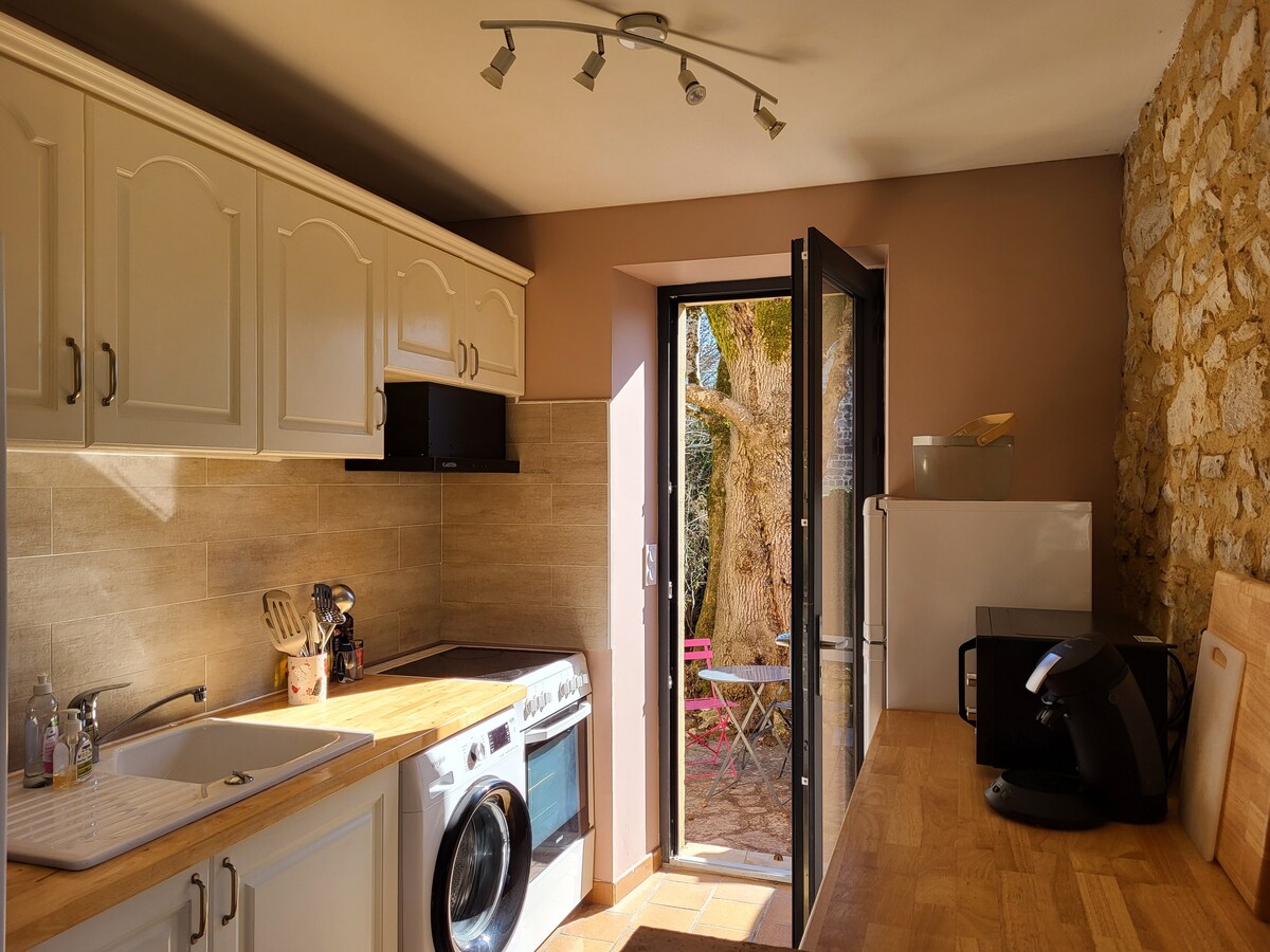 Pravo parče raja Zaštićen mirom šume u srcu zlatnog trougla, ovaj autentični Perigourdin je nalazi se u čarobnom zaseoku 15 minuta od Sarlata. Rijetka i atipična, ova kuća je moje blago! Tokom vašeg boravka treba nahraniti⚠️ dvije divne mačke. Veoma sam zahvalan domaćinima, ponekad donose „poklone“ (ptice, poljske miševe)... 2 km od čuvenog i raskošnog zamka Beynac. Ne zaboravite da ponesete posteljinu, navlaku za jorgan i jastučnice, krevet 160