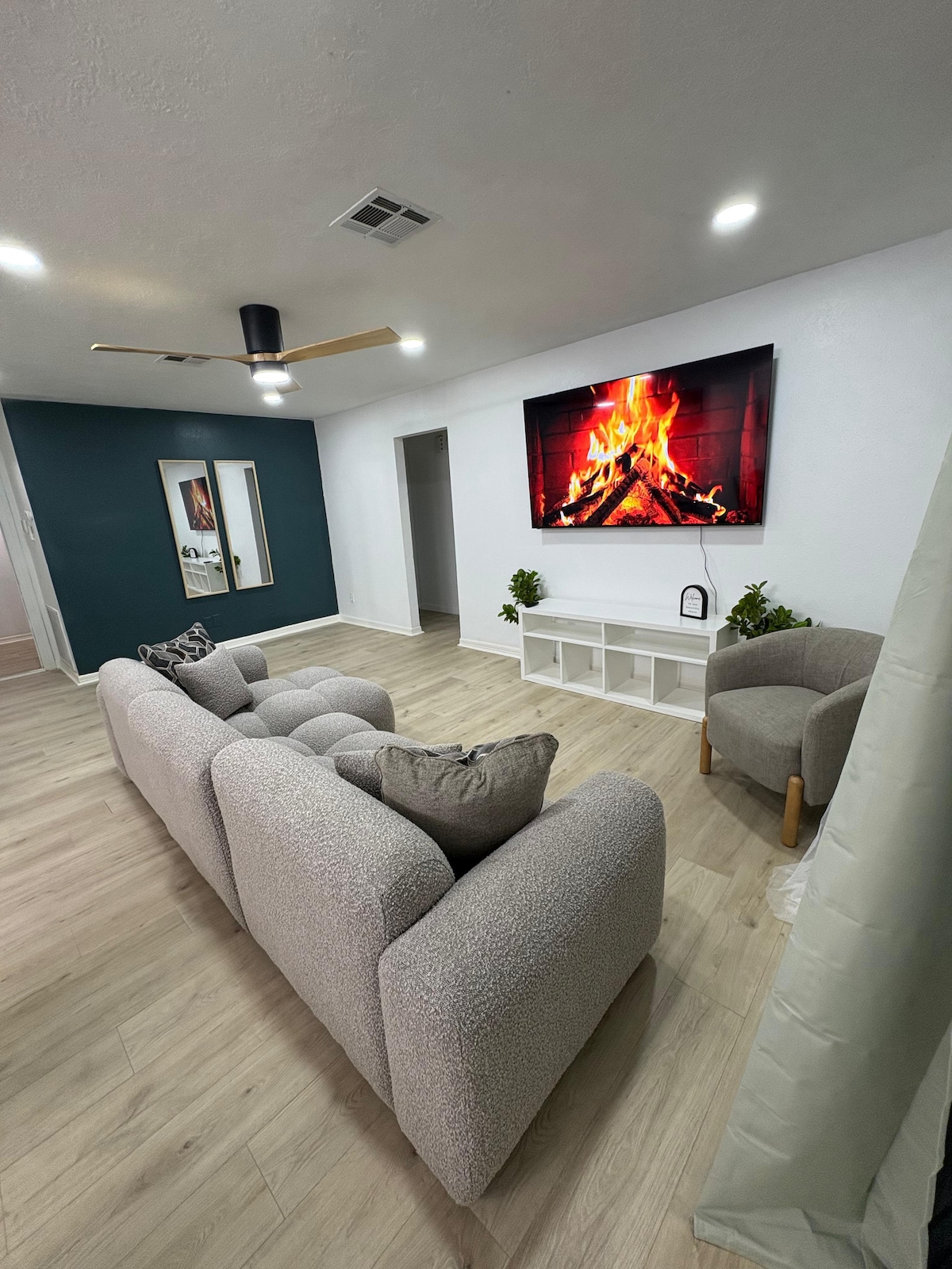 Amazing Location! Welcome to Retreat at The One, a guest favorite in Conroe! Bar! Movie theater & Perfectly situated near wedding venues, Sam Houston State University, and The Woodlands, this home offers prime access to it all. Explore Historic Downtown Conroe, boat on Lake Conroe, 5 min to 45, you’re minutes from top dining, shopping, and entertainment. Experience why guests love this perfectly located and relaxing retreat! It’s pretty epic! Enjoy the huge theater, 4 luxury suites & Patio.