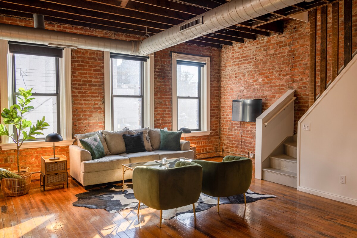 UDOBNO POTKROVLJE LUXE - Prelijepa, nova rehabilitacija u starinskoj zgradi iz 1878. godine sa elegantnom, zabavnom atmosferom i pažljivo osmišljenim detaljima gostiju. At Court & Vine by Scotti 's at the up and come Court Street Plaza. 1 blok od prodavnice namirnica Kroger, 1 blok od restorana i pivara, 3 bloka od trga Fountain, 4 bloka od kazina i odmah pored BESPLATNE linije tramvaja Cincinnati Connector do stadiona i zabave. Uključeno je BESPLATNO parking mjesto udaljeno 1 blok i po u garaži Kroger.