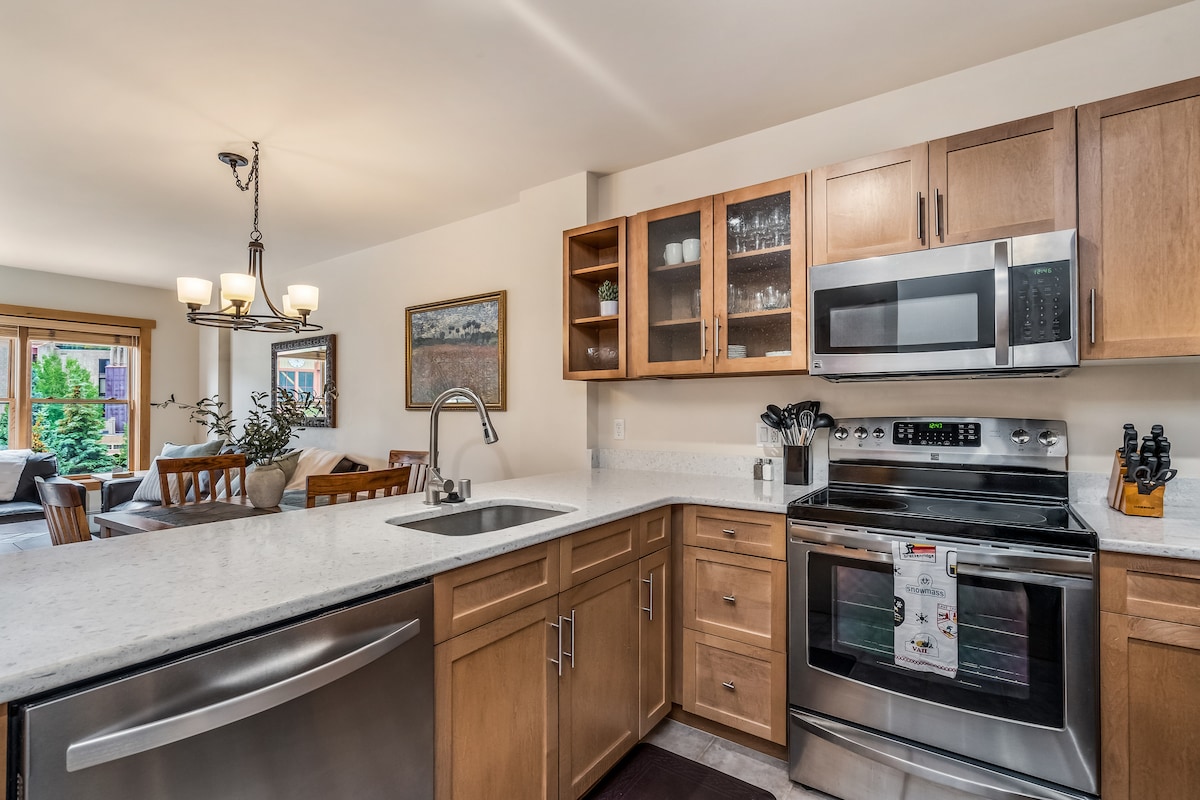 Ovaj nedavno renovirani jednosobni stan, koji se nalazi na nekoliko koraka od žičara u naselju Center Village u Koper Mauntinu, nudi pravi pristup stazi sa pogledom na planinu, žičaru i alpski tobogan sa svakog prozora i sa privatne terase. Uživajte u potpuno opremljenoj kuhinji, spavaćoj sobi sa bračnim krevetom (širine 180–220 cm), kadi, kamenom kaminu na gas i elegantnom novom nameštaju, uključujući kauč na razvlačenje sa dušekom od memorijske pene. Svetao, privlačan i idealan za parove ili male porodice.