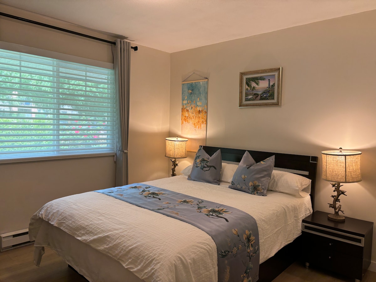 This bright above ground one bedroom with queen size bed with private entrance. It’s the perfect place if you need a short stay while working in town, or in the process of moving into your permanent location, or here to visit family. Located in Central Coquitlam. 1 Block from Poirier Recreational Centre-swimming pool, hockey/lacrosse arena, gym, & library. Blocks away from Mundy Pool. Bus stop outside front door. 40 minute commute to downtown Vancouver via car. 10 min walk to grocery stores