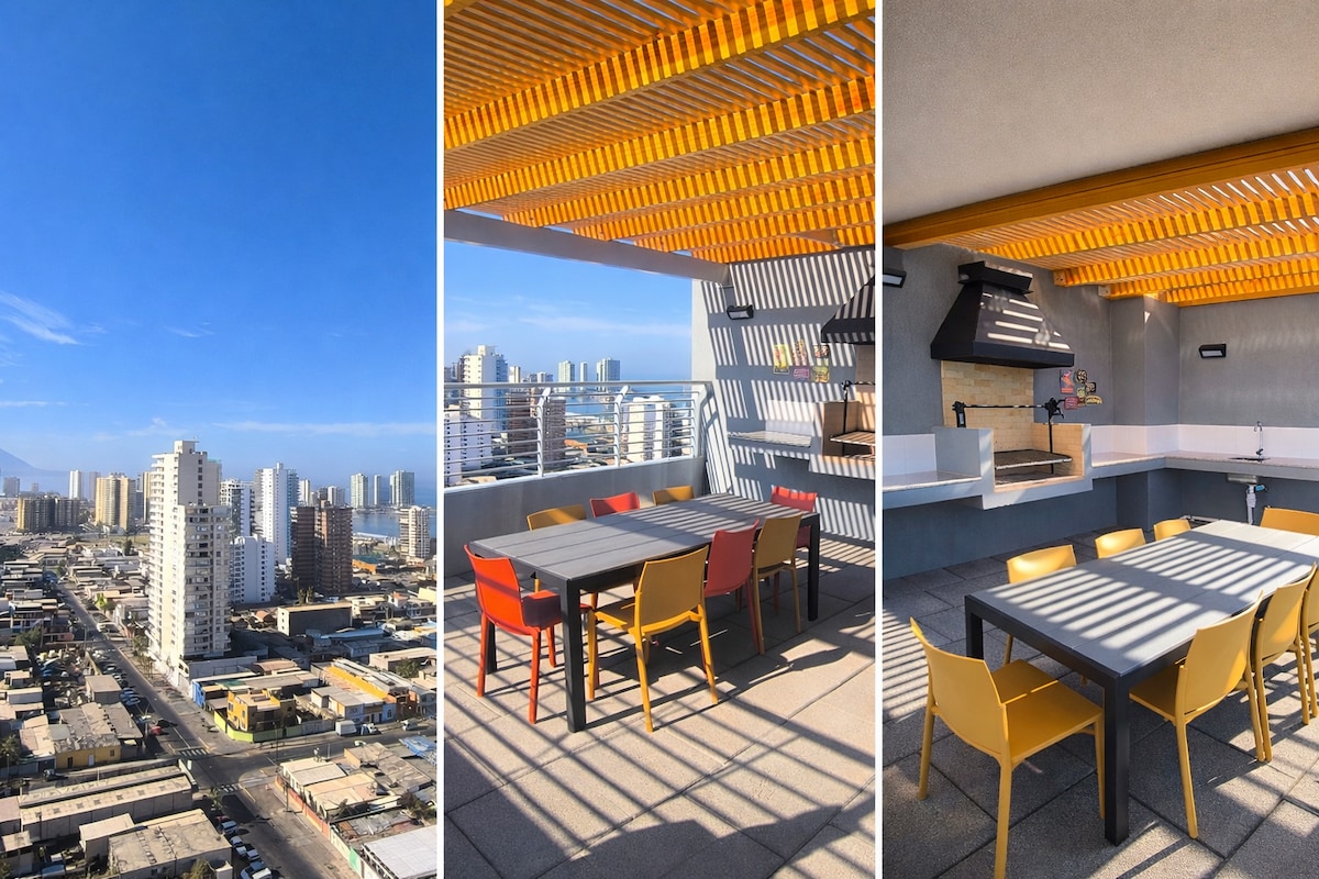 Disfruta de una estadía cómoda en este acogedor departamento en Iquique, ideal para familias, parejas o viajes de trabajo. El alojamiento cuenta con 2 dormitorios, 1 baño, cocina equipada, living con Smart TV y terraza . Acceso a la Plaza Prat, Paseo Baquedano, Zofri y el Museo Corbeta Esmeralda. La ubicación te permitirá disfrutar tanto del borde costero como de la zona comercial y cultural de la ciudad. -Wifi gratuito -Cocina equipada -Conserjería 24 horas -Estacionamiento privado