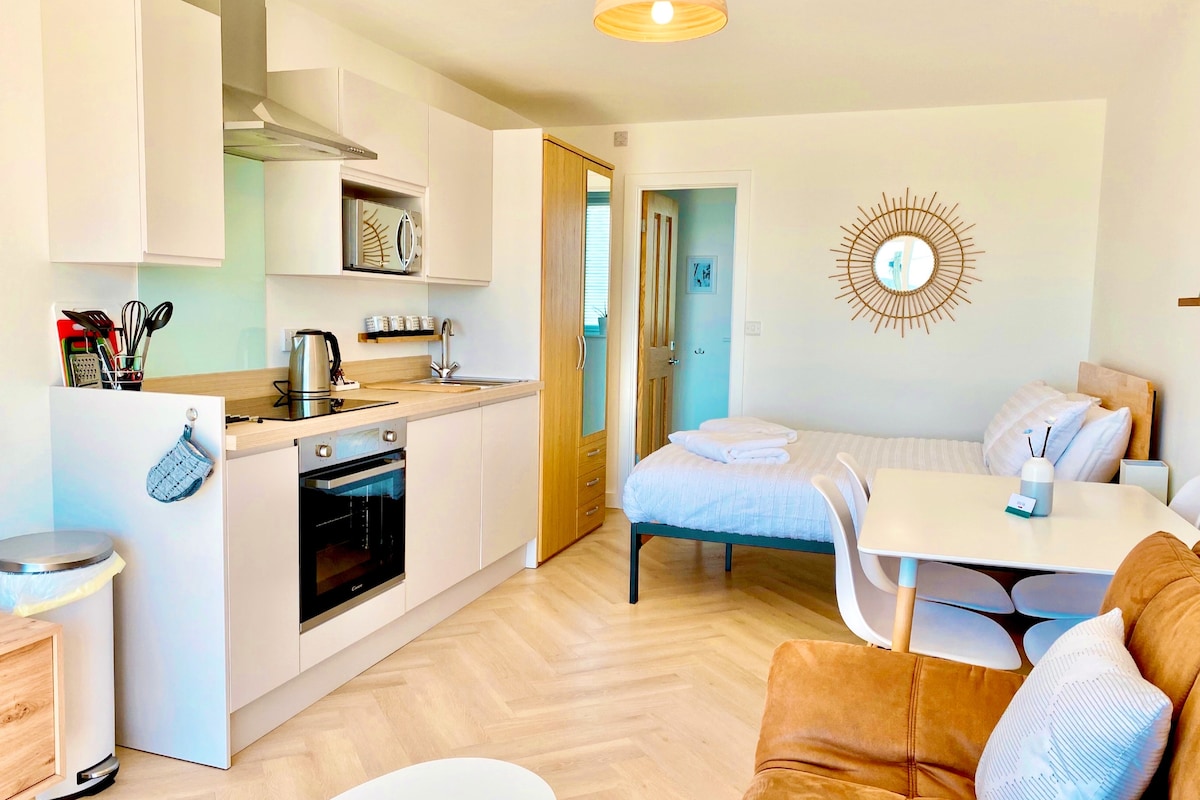 LITTLE SEAS •100m to Beach •Surf hire/lessons •Restaurant/Bar •Cafe •Shop •Outdoor gym •Coast path .Golf course/Leisure complex ‘Little Seas’ simple yet wonderful design caters for an enjoyable stay. Situated above part of the owners home it benefits from superior views with it’s own private access & balcony. You will be warmly welcomed at ‘Little Seas’ to enjoy your own piece of paradise but should you need anything the owners are on hand to help make your stay as comfortable as possible.