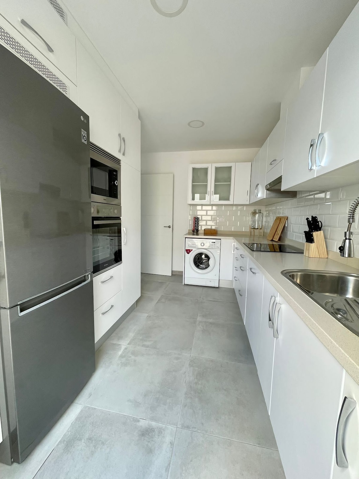 Uživajte u suncu po ceo dan u ovom svetlom, skladnom i elegantnom stanu orijentisanom na E i S uz otvoren pogled na park sa palmama. Stan od 90 m2 za vašu udobnost sa terasom za privatnost od 15 m2. Definitivno ćete se osećati dobro u ovim velikim otvorenim prostorima ukrašenim stilom. Nalazi se u najboljem delu grada, sve peške: 100 m. do plaže, 1 minut do tržnog centra El Kampanario sa hiper pijacom, restoranima, buticima itd. 5 minuta do vodenog parka. Zabranjeno pušenje, zabave, kućni ljubimci.