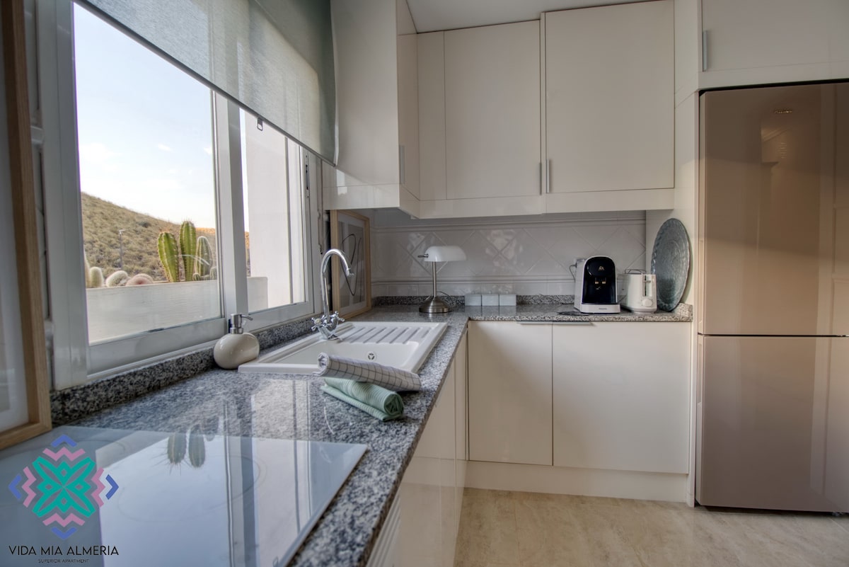 Uživajte u spektakularnom, panoramskom pogledu na more iz prostranog solarijuma. Opustite se, dopunite preplanulost i opustite se. Jedite na natkrivenoj terasi, gledajući u beskrajno plavetnilo Sredozemnog mora. Idite do jednog od dva bazena, odmarajte se i pročitajte knjigu ili uskočite i plivajte nekoliko krugova! Otiđite na plažu i osetite pesak između prstiju, slušajući zvuk talasa. Jedite u baru na plaži ili se uputite u Mojacar ili Garrucha i uživajte u svemu što ovaj živopisni sunčani kutak Španije ima da ponudi.
