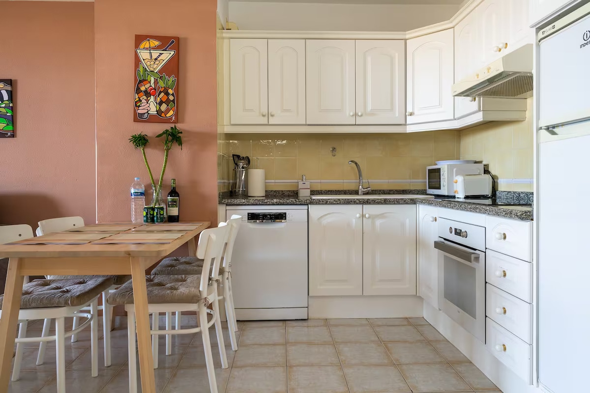 * Luksuzni stan; parovi i porodice. * Grijani bazeni; 22-27º * Amplio comedor, 2 TV 55" (Netflix, HBO, Disney itd.) * Terasa 25 m2, pogled na baštu i delimičan pogled na okean. * Opremljena kuhinja: indukciona ploča za kuvanje, rerna , mašina za sudove, frižider/zamrzivač, aparat za kafu (ruka i italijanski), toster, kuvalo za vodu, blender, mašina za sušenje veša, pegla, pegla, peškiri za kupanje i peškiri za bazen. * 3 spavaće sobe: 2 spavaće sobe 180 cm i 1 krevet na sprat 90 cm. * Dva velika kupatila, po jedna soba.