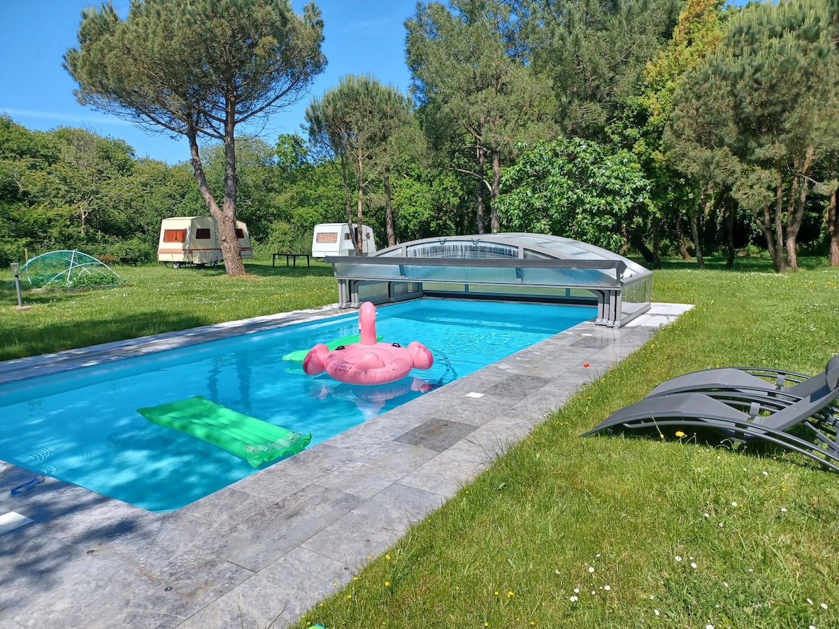 Nudimo vam da odsjednete u starinskoj kamp prikolici (uključujući bračni krevet, sto i bankete) na zajedničkoj parceli od 5000m² sa bazenom, šumovitoj koja se nalazi 3 kilometra od mora. Direktan pristup planinarskoj stazi (planinarenje i brdski biciklizam). Besplatna autobuska stanica u blizini Na manje od 1,6 km: Pekara Prodavnice (pijaca Carrefour i Biocoop) Barovi i restorani Up2Play indoor multi game park (go-karting, trampolinski park, zatvoreni fudbal, kuglanje...)