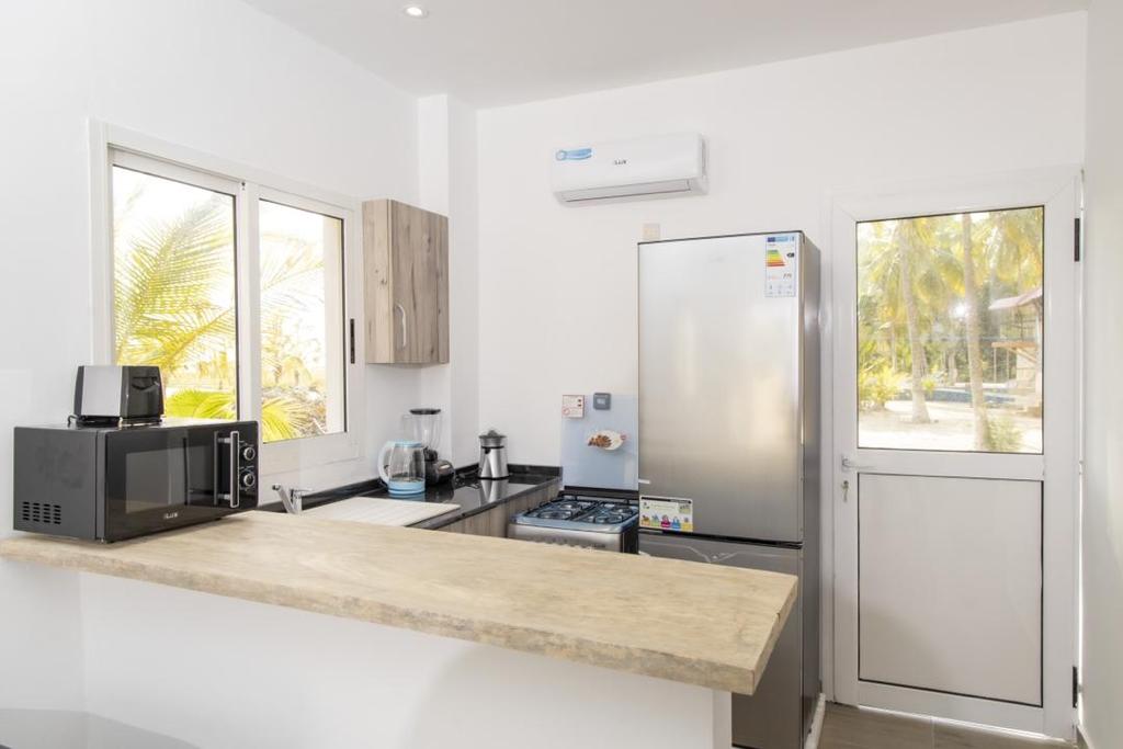Opustite se u ovom posebnom i mirnom smeštaju: Naš objekat se nalazi severno od ribarskog sela Mondoukou oko 500 m od plaže i mešavina je male farme i tropske bašte sa nekoliko stambenih i poslovnih zgrada, slobodnih pilića, privatnog povrtnjaka, kokosovih palmi, manga, badema, indijskih stabala, strastvenog voća… u zavisnosti od sezone za žetvu na vašem pragu.