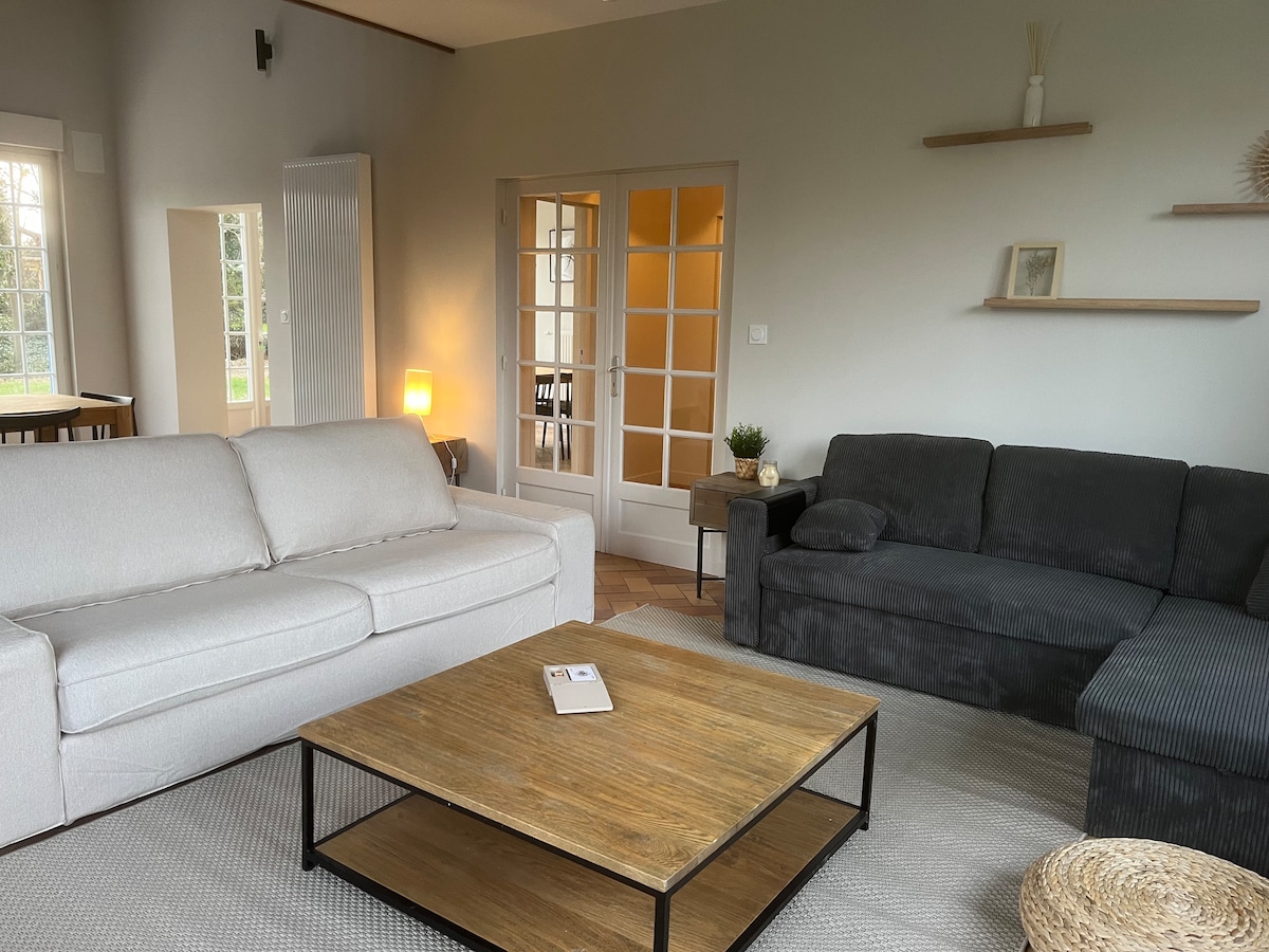 Usvojite stav čahura U srcu zaliva Somme - veoma lijep, autentičan, topao i dizajnerski stan. Obezbeđena je posteljina i peškiri. Dodatnih 50 € za 1 kućnog ljubimca. 🐾🐶 Obavezno ga navedite. 😜 Ova potpuno obnovljena seoska kuća od 120 M2 nudi prelijepe količine, kao i panoramski pogled na zaliv sa fokama. Smješten u podnožju prodavnica i pijačnog trga, sve što treba da uradite je da spustite automobil i prošetate.