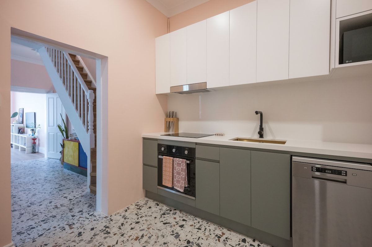 Fast Wi-Fi, in-home washer/dryer welcome you to this freshly updated 3-bed Redfern haven just mins from the CBD. 2 queen bed + 1 double bed+ sofa bed (sleeps 7) Air-con , Fully equipped kitchen & dinning. Crib, high-chair & kids’ dinnerware for families Work-from-home desk & super-fast Wi-Fi Stroll 5 min to Redfern Station or 10 min into the heart of Sydney. Cafés, parks and markets are on the doorstep-leave the car behind. Free Whole day street parking