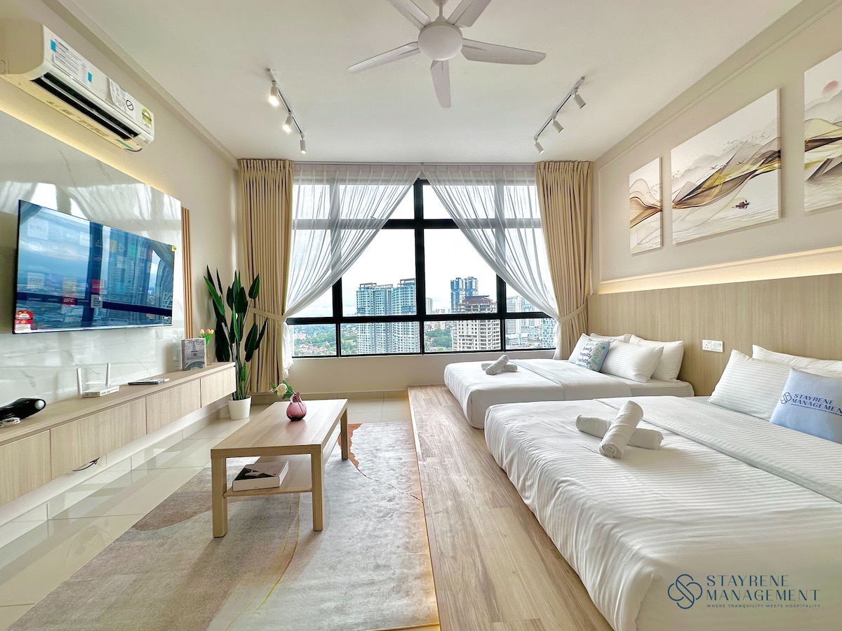 Twin Galaxy Residence! Dobro došli u našu prostranu/zelenu i udobnu studio jedinicu sa nevjerovatnim pogledom na grad❤️, savršenu za par, male porodice, poslovne putnike/turiste za 2/3 osobe. Naša jedinica se nalazi u srcu grada Johor Bahru, mjesto je okruženo raznovrsnim restoranima F&B, porodičnim spa/masažnim centrom, praktičnom prodavnicom, noćnim životom itd. Dođite da uživate ^^ Kuća je opremljena krevetom veličine 1 x kraljicom, sofom (takođe kaučem na razvlačenje), namjenskim radnim prostorom i kuhinjom sa dnevnom osnovnom opremom :)
