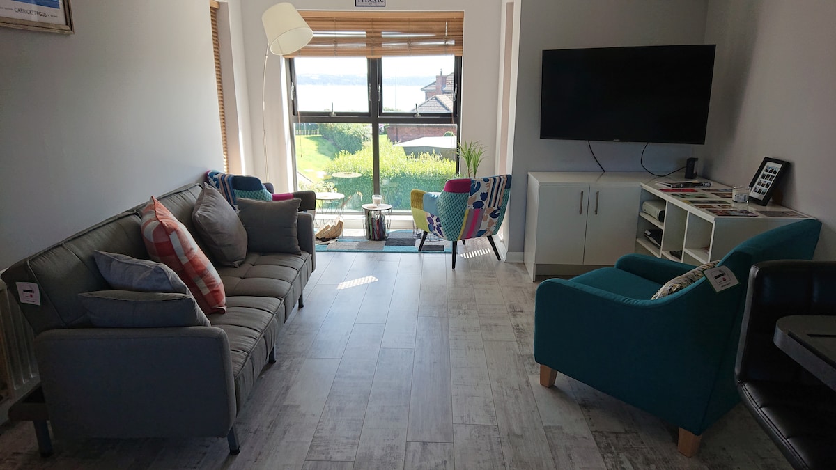 Relax in our spacious 2-bed, 2-bath apartment in the heart of Portrush, just steps from West Strand Beach and the famous Promenade. With stunning ocean views and an open-concept living area, it's the perfect base for families or friends to explore the breathtaking Causeway Coast. Comfortably sleeps up to 6 guests. Enjoy modern amenities and a prime location for an unforgettable coastal getaway.