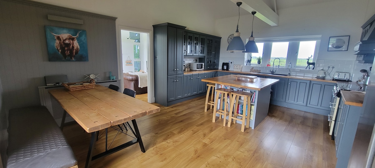 Opustite se sa cijelom porodicom u ovom mirnom smještaju pored naše organske farme na obalama prelijepog Lough Key-a u Co. Roscommonu u Irskoj. Naš moderni bungalov ima pogled na jezero i pristup obali jezera sa polaznom tačkom za kajake. Imaćete pristup privatnom trakom Kuš Vud, drevnom šumovitom ostrvu spojenom sa kopnom uskom stazom. Ostrvo je u našem privatnom vlasništvu i tokom boravka možete da istražujete i uživate u pikniku u drevnim šumama i istorijskoj tvrđavi Ring Fort.