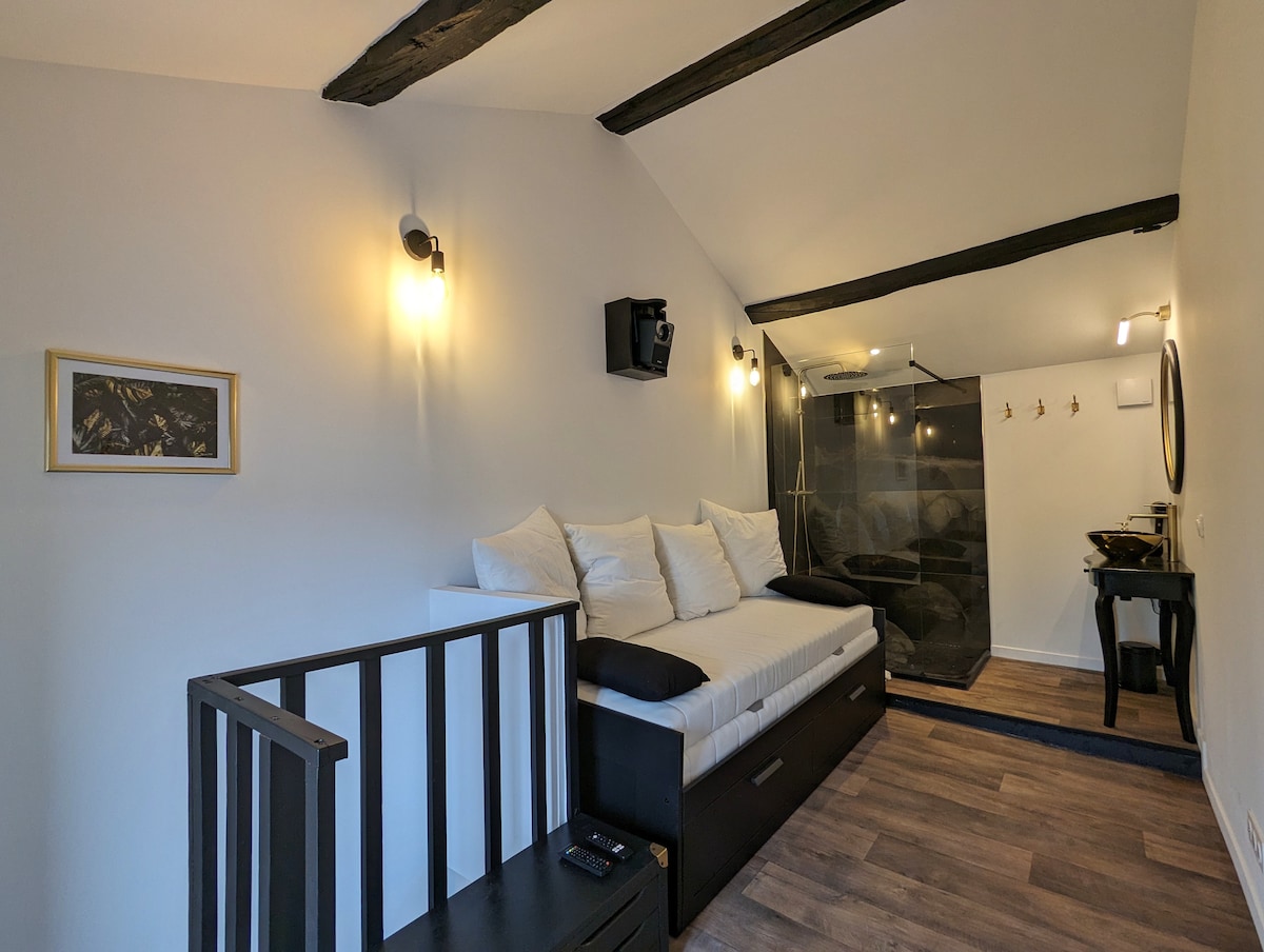 Šarmantni kameni studio, nezavisan ulaz, pored naše kuće. Memorijski krevet, opremljena kuhinja, veliko kupatilo, vlakna. Produžite svoje putovanje u prošlost u Puy du Fou uživajući u ovom udobnom studiju koji će vas uroniti u početak 20. vijeka. 500 m od Super U. 1 sat i 15 minuta od obale Vendee, 1 sat i 15 minuta od Futuroskopa, 1 sat od Marais Poitevina, 1 sat i 20 minuta od La Rošela, 1 sat i 15 minuta od Plančte Sauvage, 50 minuta od Nantesa, 1 sat od bioparka Doué-la-Fontaine, 20 minuta od festivala Poupet.