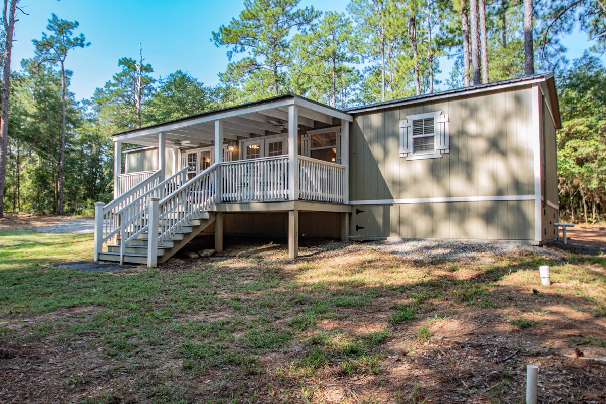 8-Miles from I-75, close to Perry Fairgounds, WR Air Force Base, members of Pine Needles Golf Course and Cafe. Beautiful Classy Cottage with large front porch nestled in a tall pine woods on a 3 acre lot which is about 200 feet from our other property. Back porch is now a utility room; office, bedroom, nursery, storage, etc. Located 8 miles West of I-75 and 1/2 mile off of Highway 49. It is about 100 feet away from our other listing, "Cozy Cabin in the Woods" .