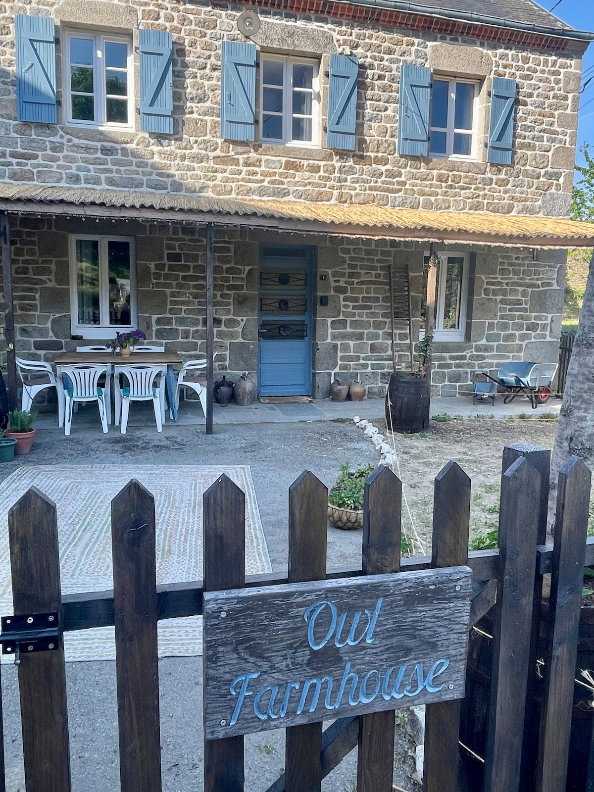 Owl Farmhouse is a traditional 19th-Century French Farmhouse, it is peaceful, quiet and perfect for rest and relaxation. Local amenities: Ahun (5 km) and Guéret (14 km). Downstairs : Fully equipped kitchen (with complementary coffee, tea, sugar & hot chocolate), a dining table with seating for 8, sitting room for 8, bedroom area with double bed, shower room and toilet - all accessible. Upstairs 2 double bedrooms, 1 twin and bathroom. All bedding and towels are provided for your stay.