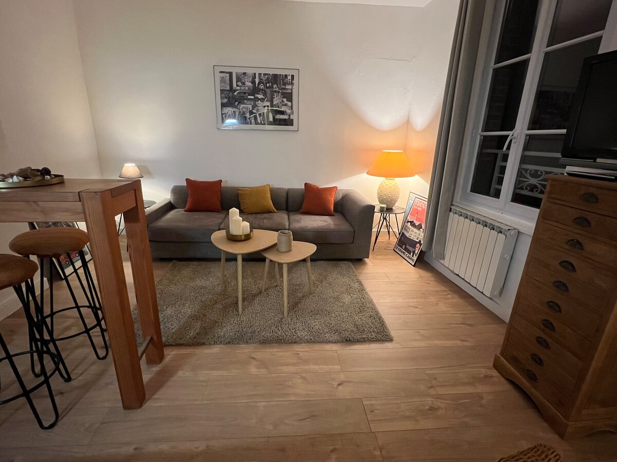 Les Câlins d 'Honfleur je rođen iz ljubavne afere sa gradom Honfleur, njegovom atmosferom, uskim ulicama, starim slivom. Zamišljala sam prijatno mjesto, u srcu istorijskog okruga, 50 metara od crkve Svete Katarine, koje je lako živjeti, mirno i udobno. Pjerov stan od 41 M² nudi vam svu udobnost, veliku zasebnu spavaću sobu sa bračnim krevetom, veliki dnevni boravak/ trpezariju sa potpuno opremljenom kuhinjom, tuš kabinom i odvojenim toaletom.