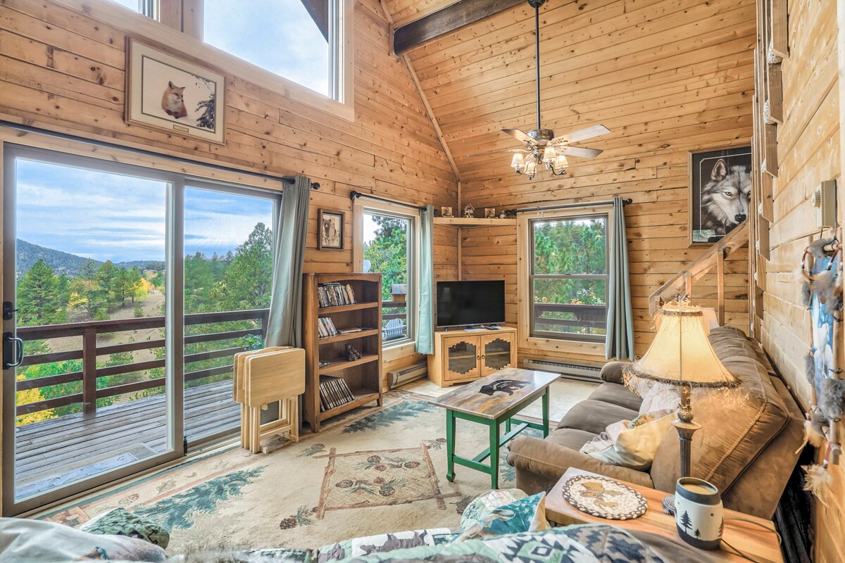 Dobro došli u naše veoma privatno skrovište sa pogledom na planine! Naša brvnara od 1000 kvadratnih stopa je okružena hiljadama hektara Nacionalne šume Pajk. Ne možete da vidite drugu kuću sa ovog imanja! Zato ga zovemo „Skrovište“. Mogli biste bukvalno da pešačite kroz zadnja vrata sve do vrha Pajks Pika i da ne pređete put niti vidite drugu kuću. Pravi odmor na Roki planinama. Kućni ljubimci su dobrodošli, naknada za kućnog ljubimca je 50 USD za prvog kućnog ljubimca i 25 USD za drugog kućnog ljubimca. Biće naplaćeno nakon rezervacije