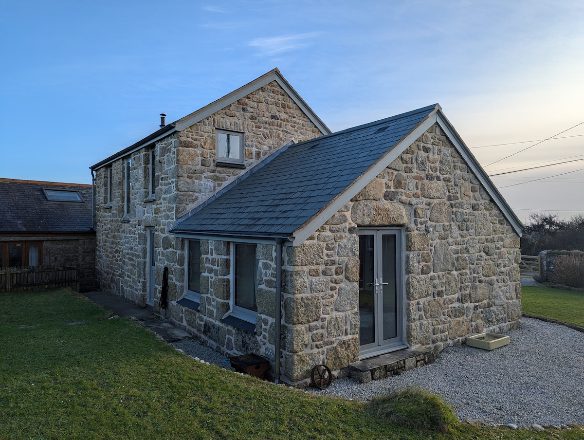 The Barn is a peaceful, romantic, rustic retreat deep in the heart of West Cornwall but, only 10 mins from Penzance & St Ives. Situated in a fantastic secret location for a holiday being a short distance from St Ives, Lands End, Penzance, St Michaels's Mount & the Lizard. The Barn is centrally heated with a log burner as well. Great carfree walks from the door. This stylish Barn is perfect for a couple or a small family. It has super comfortable beds. Superfast WIFI . Parking for 2 cars.