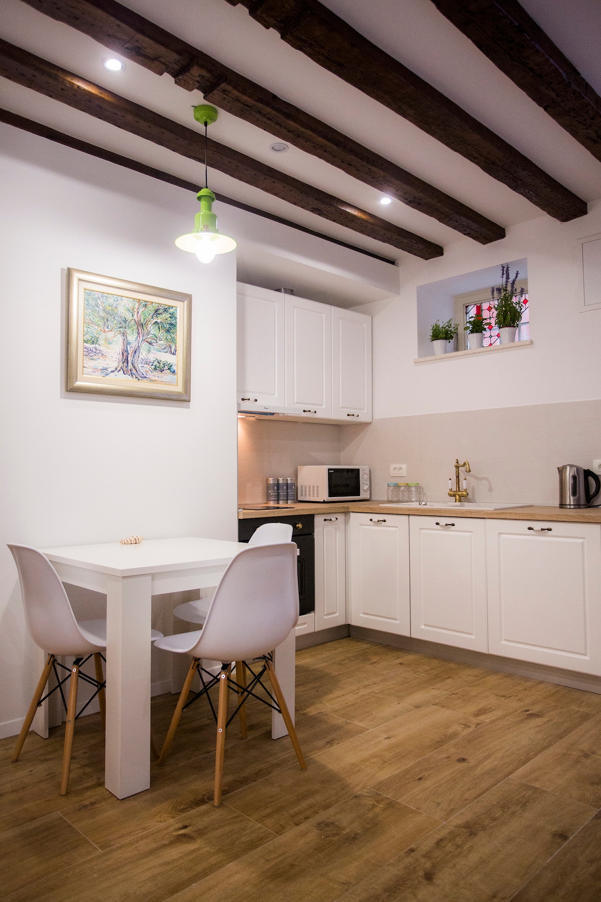 „Laganini” znači nestašan u Dalmaciji: usporite, uživajte u životu, opustite se, zaboravite na vrijeme i sve obaveze. Pozivamo vas u naše ukusno renovirano potkrovlje na tavanu. Na ukupno 60 kvadratnih metara pronaći ćete pažljivo osmišljen tlocrt, moderan stil namještaja, mnogo romantike i dašak luksuza, uokviren starim prirodnim kamenim zidovima. Opustite se i uživajte u pogledu na more, okolne planine i stare gradske krovove Varoša.
