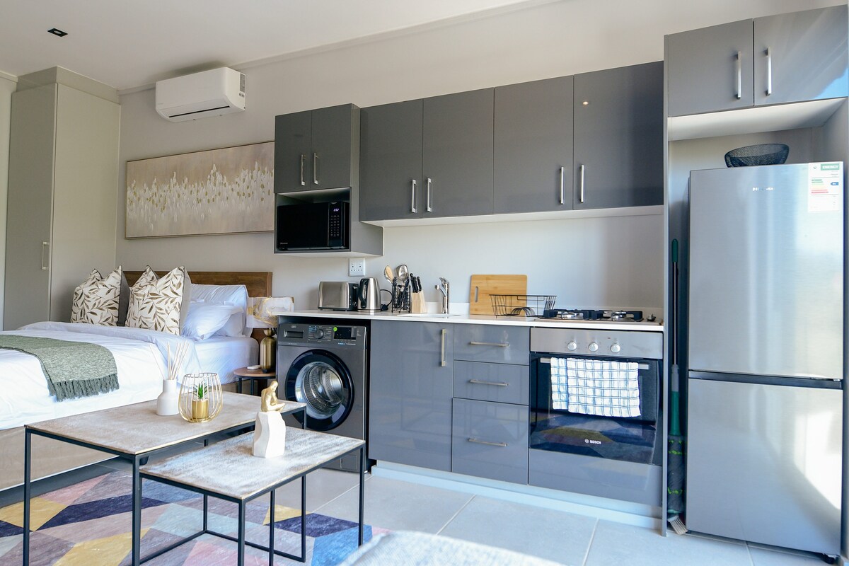 Smješten na kraju šetališta uz plažu u srcu sela Umhlanga Rocks, ovaj studio na plaži je osmišljen da ispuni sva vaša očekivanja. Pogledi koji oduzimaju dah, pjesme okeanskih talasa, najljepši izlasci sunca, privatna sauna i luksuzni namještaj i okovi su dobrodošli! Opremljen rezervoarom za vodu, filterom za vodu i pretvaračem za veću udobnost gostiju (npr. pitka voda iz česme i bez tereta i prolijevanja vode).