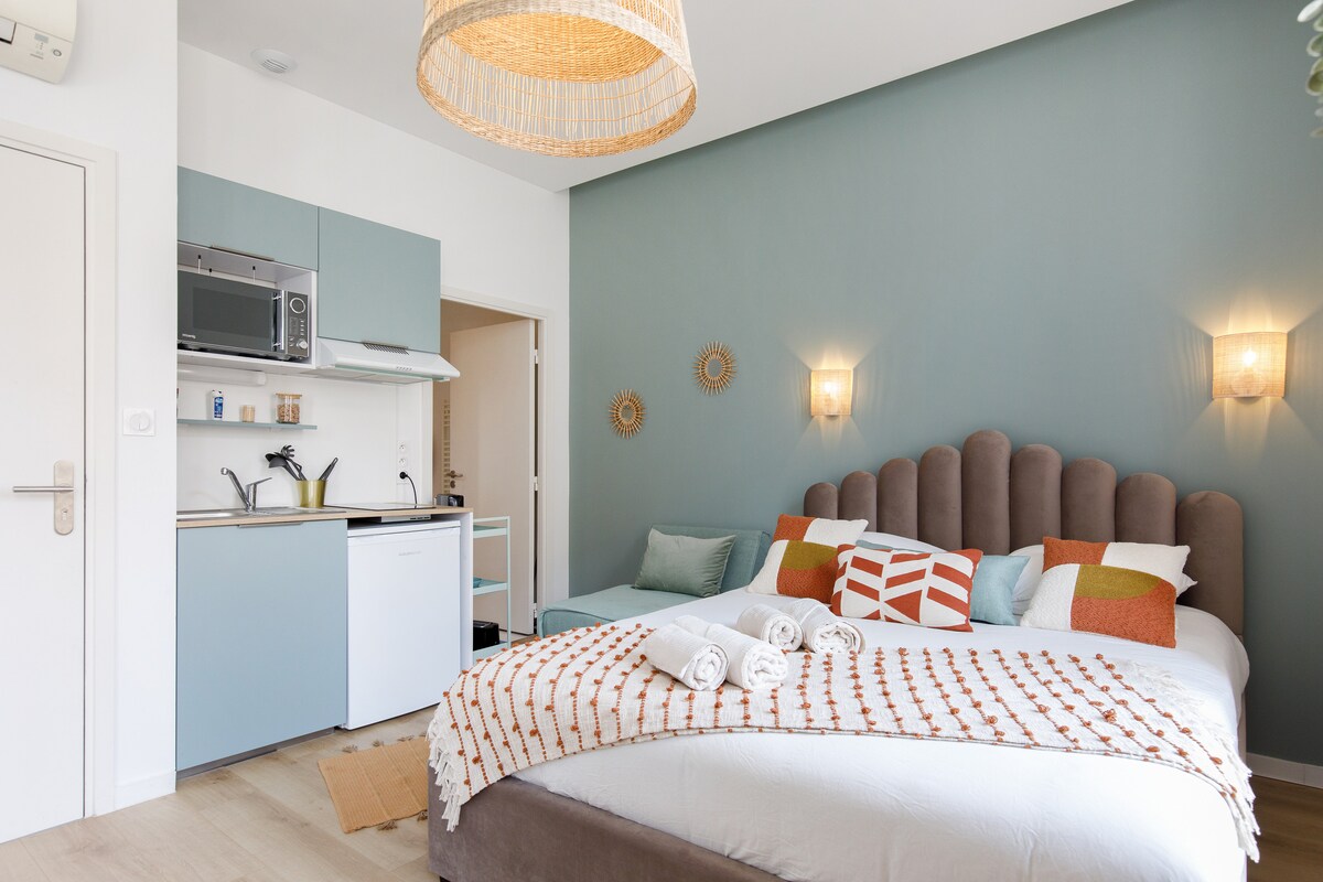 Dobro došli u naš stan koji se idealno nalazi u Kanu, gdje možete uživati u prijatnom i praktičnom boravku. Njegov besplatan parking, miran zahvaljujući dvostrukom staklu i odličnoj lokaciji u jednom od najpopularnijih dijelova grada, bićete na pješačkoj udaljenosti od vrhunske pješčane plaže, Croisette, Palais des Festivals i hotela Martinez. Ovaj smještaj je dobio mnogo pozitivnih recenzija i nagrađen je nagradom za recenzije putnika 2023.