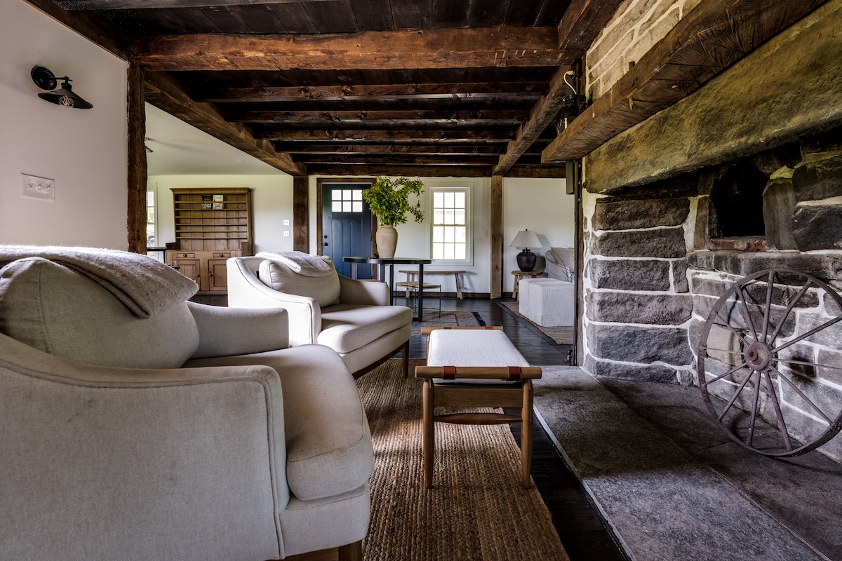 Odsjednite kod nas na našoj istorijskoj farmi koja radi! Opustite se na terasi iza kuće i uživajte u pogledu na naše imanje od 12 hektara i mirne pašnjake. Za praktičnije iskustvo, pridružite nam se u obilasku kako biste bolje vidjeli život na farmi. Osnovana 1739. godine, naša farma ima bogatu istoriju u poljoprivredi i stoci. Udobna seoska kuća u studio stilu ima otvoreni dnevni prostor sa kombinovanom spavaćom sobom, dnevnim boravkom i trpezarijom, kao i čajnom kuhinjom i kupatilom sa tuš-kabinom za vašu udobnost i praktičnost.
