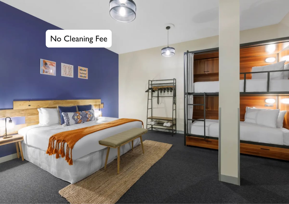Prostrani studio apartman sa kuhinjom, kupatilom, trpezarijskim stolom i bračnim krevetom. - Dobro opremljena čajna kuhinja - Trpezarijski sto i sedišta - Aparat za kafu - Objekti za peglanje - Čajnik i toster - Mikrotalasna - Mašina za sudove - brzi Wi-Fi ***Imajte na umu da naplaćujemo naknadu od 150 USD za goste koji izgube ključeve ili se zaključaju van objekta i potrebna im je pomoć nakon radnog vremena za ulazak u zgradu.***