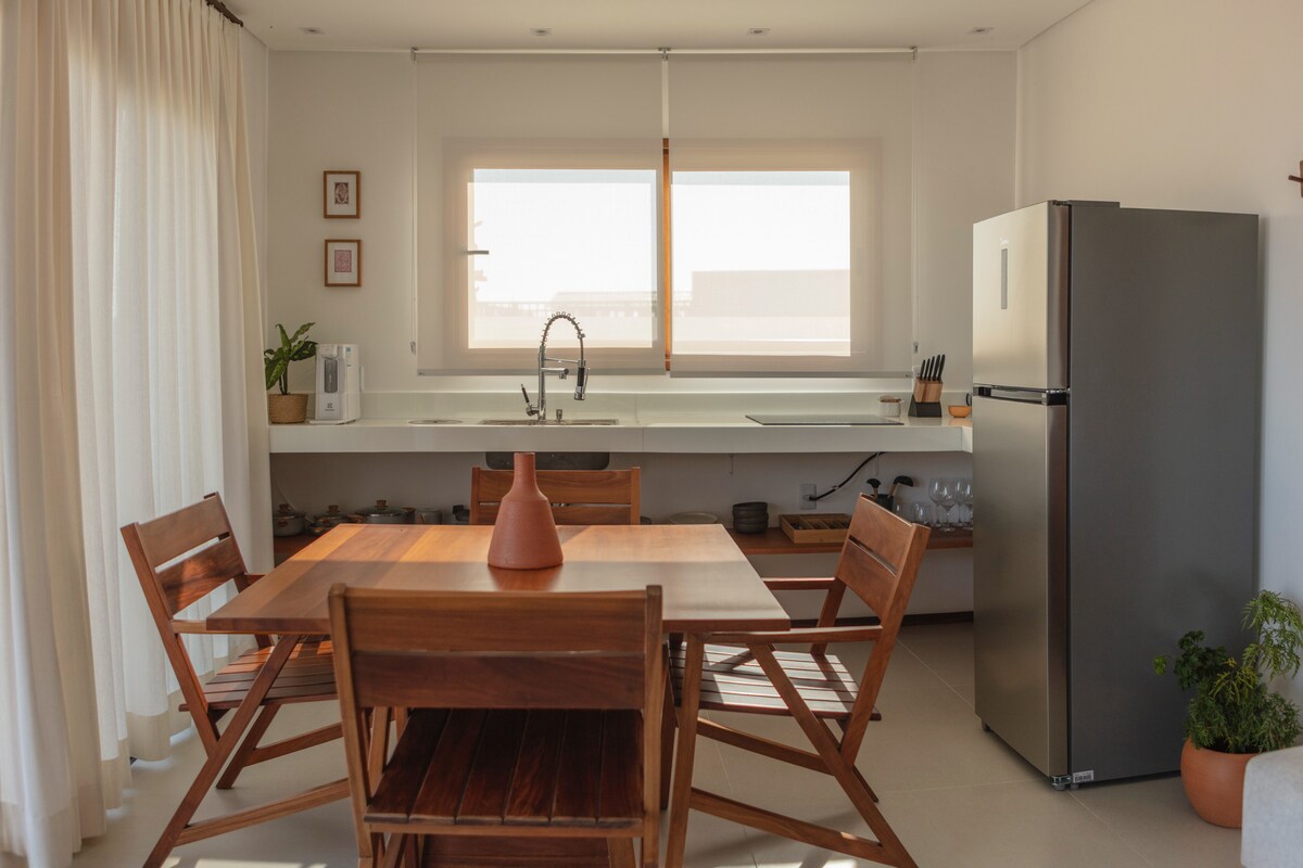 Luksuz malog prostora u kojem se priroda, mir i regionalni materijali stapaju u iznenađujuće mesto gde je vetar sveprisutan. Kuća okrenuta prema moru s nogom u pijesku, nalazi se na mjestu za zmajeve u Preá, 300 metara od Rancho do Kitea , pored restorana s balkonom i 300 metara od glavne ulice, u asfaltiranoj ulici. Sastoji se od 4 apartmana, kuhinje, dnevne sobe, trpezarije, krova sa đakuzijem i roštiljem. Takođe ima i travnjak i kompresor za naduvavanje zmajeva.