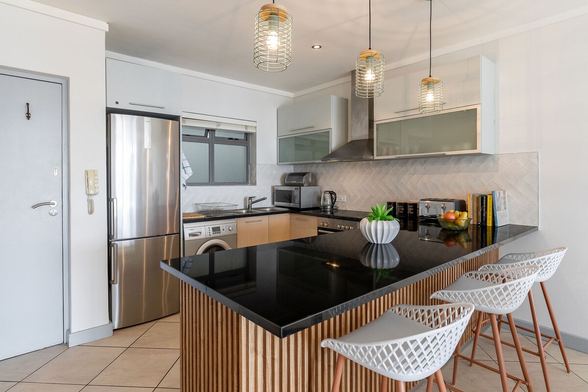 Nema prolijevanja tereta. Nema dodatnog naplate za struju. Okruženje, vidljivi službenici obezbeđenja. Tako prostran (173 m2). Klimatizovano. Privatno, bezbedno i bezbedno. Unutrašnjost je ispunjena suncem. Veliki balkon okrenut ka severu. Prošetajte do obale, CTICC-a, centra grada, zaliva Granger, Mouille Point, parka Green Point. Watertaxi to Waterfront. MyCity autobus za Seapoint, Clifton plaže, Camps Bay itd. Jednostavan pristup vinskim imanjima, Kejp poluostrvu. 10 minuta vožnje Table Mountain 2 bezbedna parking mesta