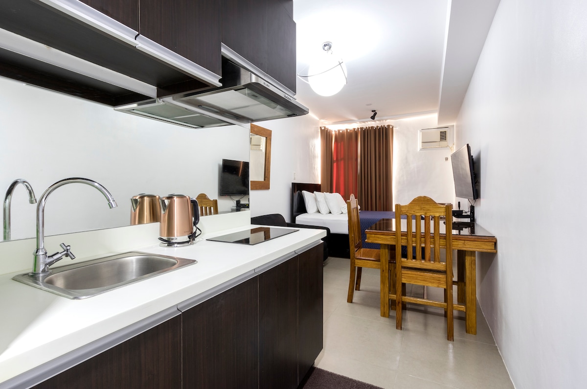 Prozračna završna jedinica sa prozorima sa 3 strane. Odvojeni krevet, dnevni boravak i kuhinja. Potpuno klimatizovane sa pojedinačnim kontrolama temperature za krevet i dnevni boravak. U baštenskoj vili usred bujne bašte koja okružuje bazen i prostor za sadržaje. Glavno predvorje preko liftova koji služe samo u predvorju, parkingu i baštenskoj vili. Pokriveni most (2. sprat) do Gateway Mall-a, LRT2 i linija MRT3. Terminal za prevoz do aerodroma i skoro sve ostalo što vam je potrebno udaljeno je samo nekoliko koraka.