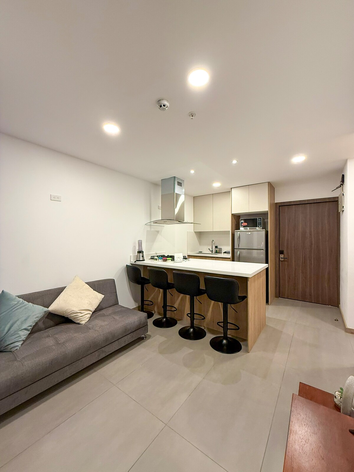 Ubicada en el exclusivo edificio TERRAZZA, cerca de áreas verdes y recreativas. A solo 5 minutos en auto del centro histórico y zonas comerciales. Disfruta una estadía de lujo en esta moderna suite con dos balcones privados: uno con vista a las montañas y otro al parque. Cuenta con un baño completo y uno social, cocina equipada, sala acogedora, dormitorio elegante, parqueadero privado, acceso gratuito al gimnasio y seguridad 24/7.