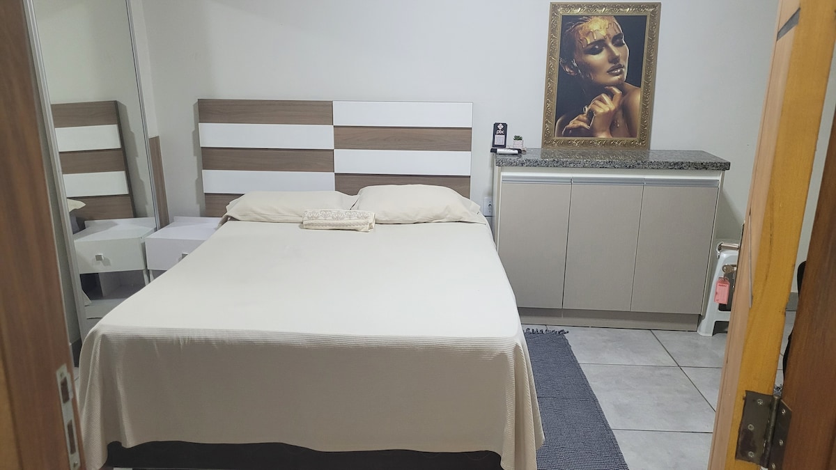 Stan u srcu okruga Goiabeiras u Kujabi! Nalazi se u jednom od najboljih regiona grada, na nekoliko minuta hoda do prodavnice Goiabeiras, 5 minuta od arene Pantanal, 4 minuta od Shopping Estação i 3 minuta od Big Lar i Assaí. Sa 2 spavaće sobe (1 bračni krevet i 2 kreveta za jednu osobu), može da primi do 4 osobe sa velikom udobnošću i sofisticiranošću. Uživajte u privilegiji boravka u luksuznoj četvrti, u blizini glavnih atrakcija i sa jednostavnim pristupom svemu!