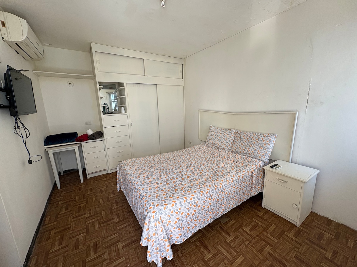 To je udoban prostor za 2 osobe u kojem za vašu upotrebu imaju sobu s bračnim krevetom, kuhinju s priborom, prostrani frižider i mikrotalasnu pećnicu. Provjerite sadržaje T. V, WI-FI, NETFLIX, MINISPLIT, topla voda je samo u hladnoj sezoni! Nalazi se jedan blok od medicinske škole, 5 minuta od rijeka Plaza 4, 7 Foruma, 5 od šetališta morskog zida da biste uživali u šetnji, bilo biciklom ili klizanjem, ideja je da uživate u svim njegovim dijelovima morskog zida!