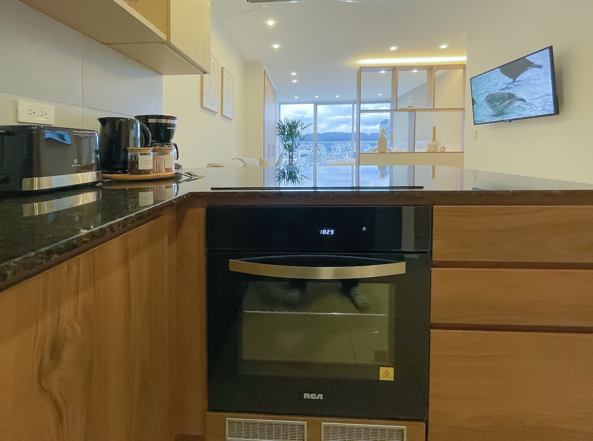 Uživajte i opustite se u našem luksuznom apartmanu, koji se nalazi u finansijskom sektoru Kita. Sa 17. sprata čuvenog Edifa. Prvo, možete da ustanete sa najboljim pogledom na izlazak sunca. Zgrada ima ekskluzivne društvene prostore: bazen, vlažne prostore i teretanu, za nezaboravnu posetu. Stan razmišlja o vašoj udobnosti, u njemu ćete pronaći sve što vam je potrebno za prijatan i prijatan boravak: Wi-Fi, opremljenu kuhinju, TV sa Netflix-om.