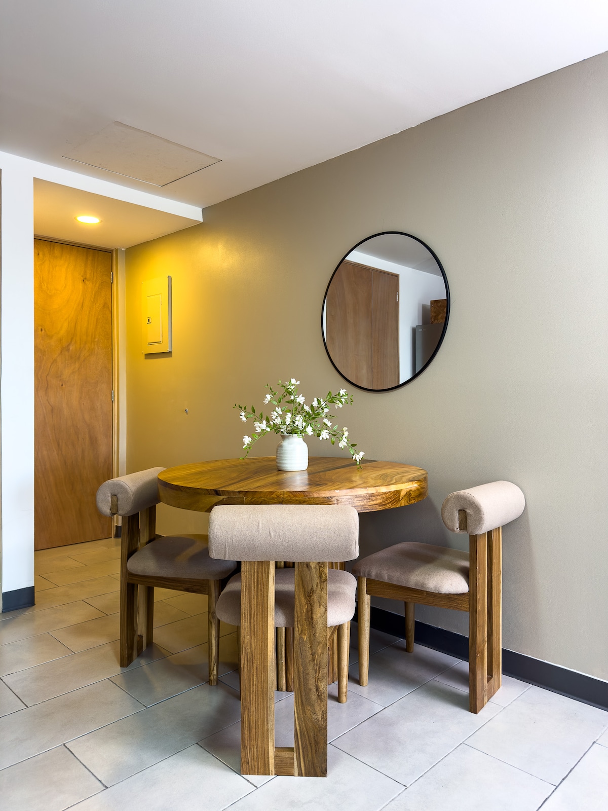 High-end luxury style 1-Bedroom apartment right in the heart of El Salvador del Mundo. Enjoy a stylish experience at this centrally located apartment close to shops and restaurants. Amenities Included: Welcome beverages AC in bedroom AC in living room Fast internet Bluetooth speaker Hot water Coffee machine and tea Air purifier Body soap and shampoo Laundry with detergent Smoke alarm Carbon monoxide alarm Professionally cleaned 24/7 security
