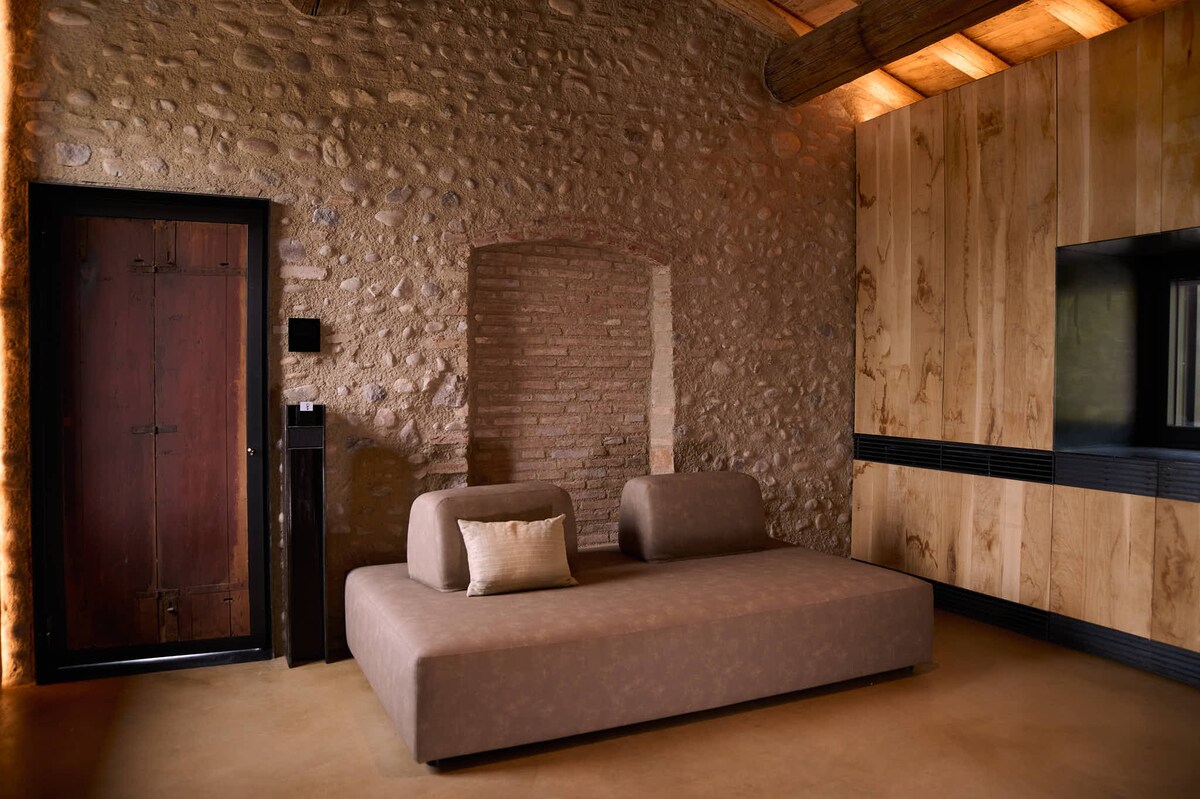 Contemporary Boutique B&B in VALPOLICELLA, in an ancient stone house with two elegant minilofts overlooking the valley, a big GARDEN full of secluded spots surrounded by vineyards with an outdoor WHIRLPOOL to use privately for 2 hours/day (only May-Sept because not heated). ECOLOGICAL geothermal system for heating/cooling and solar panels for hot water. The food needed for breakfast to prepare in the suite is included. 20 mins from Verona, 30 from Lake Garda, 25 from the airport.
