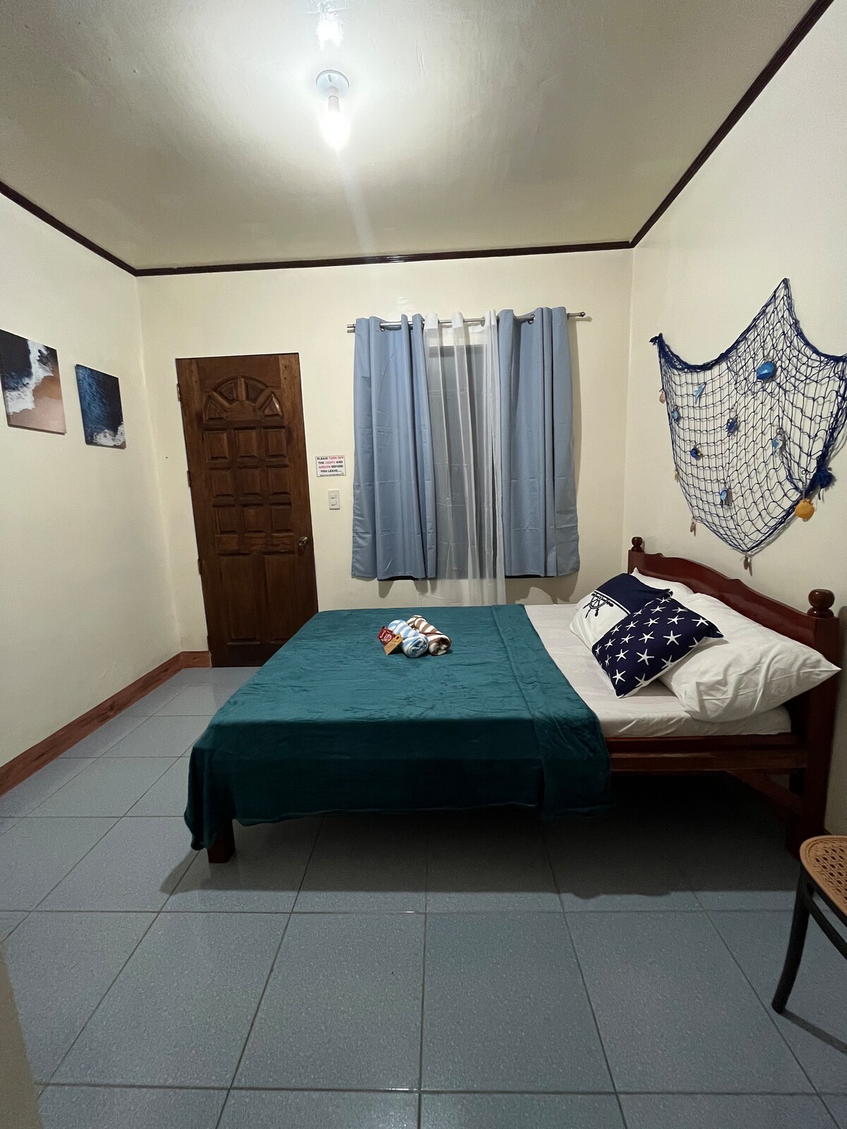 Good for 3 guests. 1-bedroom with a double bed, single bed, and additional floor bed if requested. Air-conditioned. Clean bathroom. Free WiFi. Cooking stove available for an extra fee. 3-5 min drive to the beach, Motorcycle rental available in the area Nearby: Santa Fe Port – 450m (2-min drive) Kota Beach – 1.2km (5-min drive) Ogtong Cave – 2.5km (7-min drive) Paradise Beach – 3.8km (12-min drive) Airport – 2km (6-min drive) Market – 700m (3-min drive)