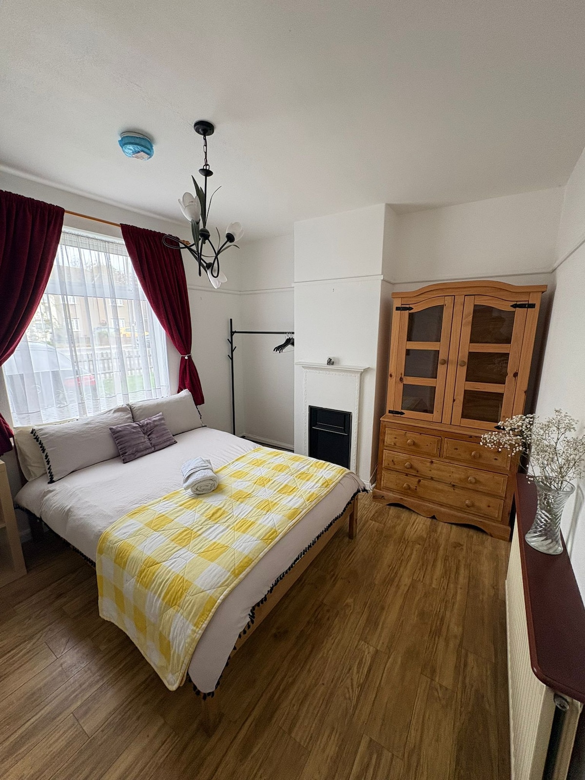 Imajte na umu da ovaj smeštaj NIJE pogodan za grupe mladih. Dobrodošli u naš udoban, praktičan stan, idealan za parove, male porodice ili poslovne putnike. Objekat ima: Raspored kreveta: 1 prostrana spavaća soba s udobnim bračnim krevetom i sklopivim bračnim krevetom u dnevnoj sobi za dodatne goste. Lokacija: Nalazi se u RM10, na samo 7–10 minuta hoda od stanice Dagenham Ist, sa lakim pristupom javnom prevozu, prodavnicama i lokalnim sadržajima.